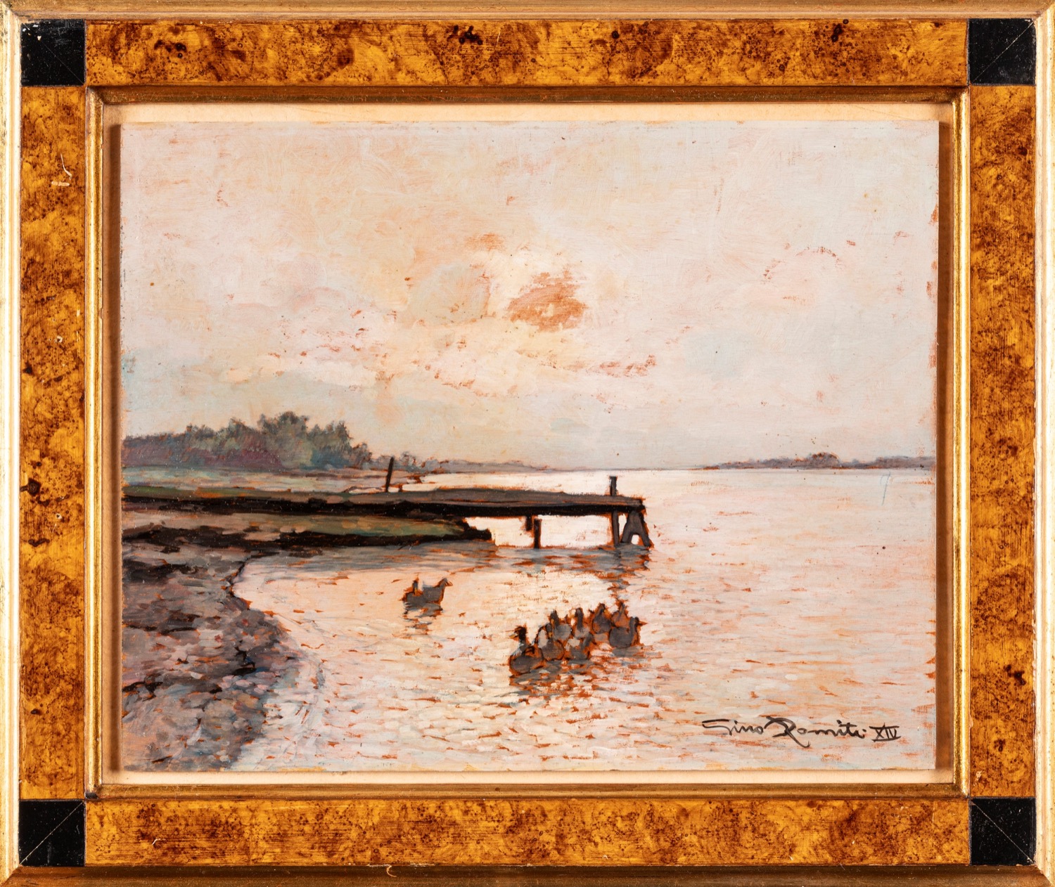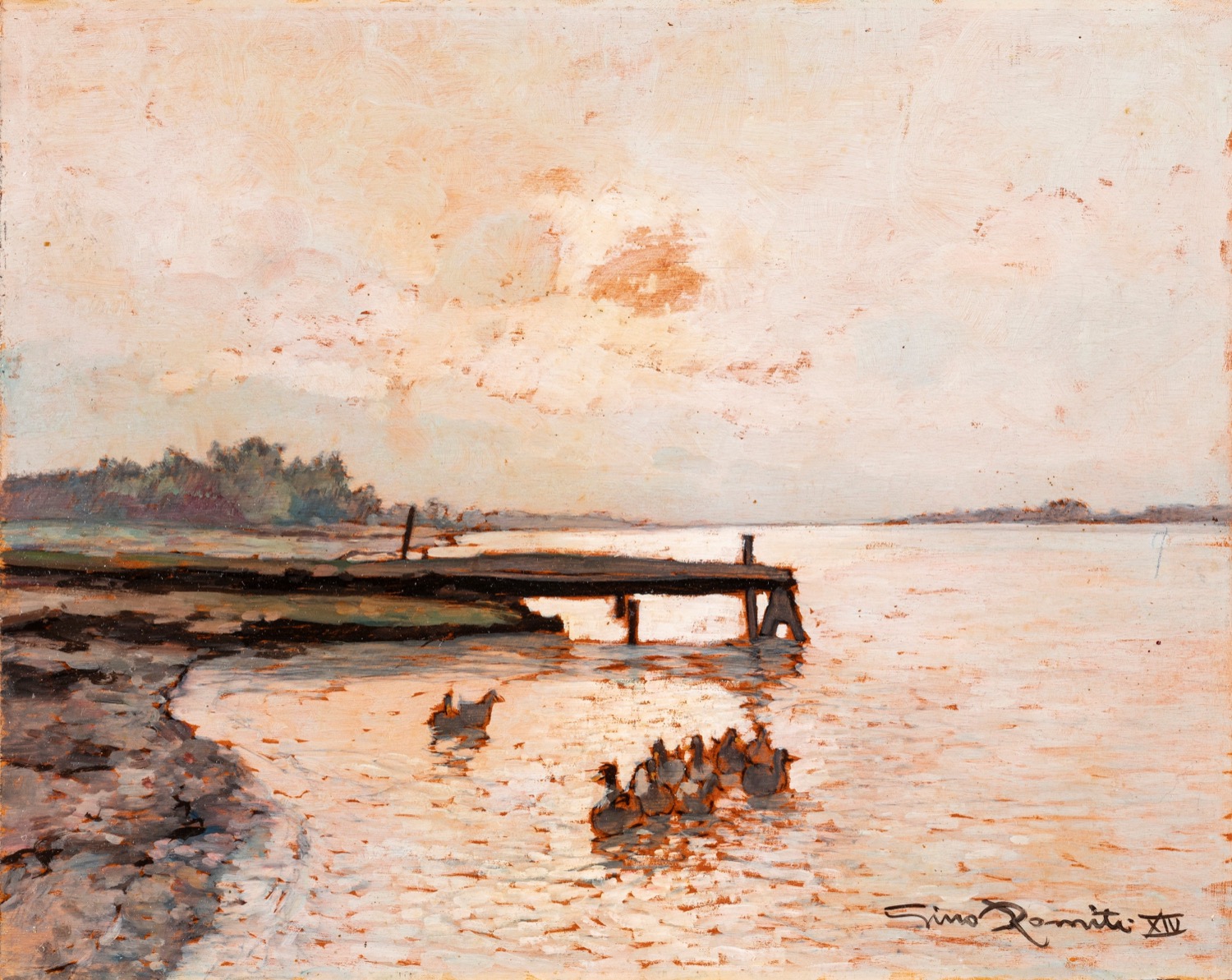 Gino Romiti (Livorno 1881-1967) - Papere al crepuscolo, 1936