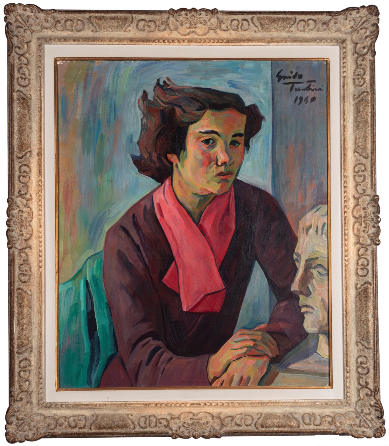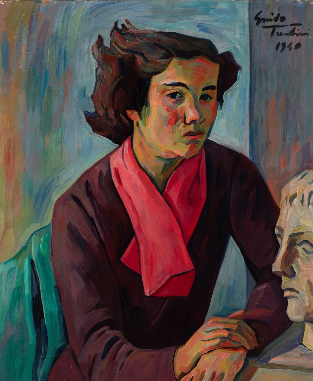 Guido Trentini (Verona 1889-1975) - Figura con sciarpa rossa, 1940