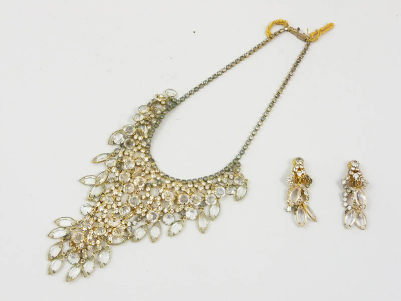 PARURE BIJOUX - BIJOUX PARURE una collana in metallo dorato con piccoli cristalli, coordinata da orecchini, difetti e mancanza