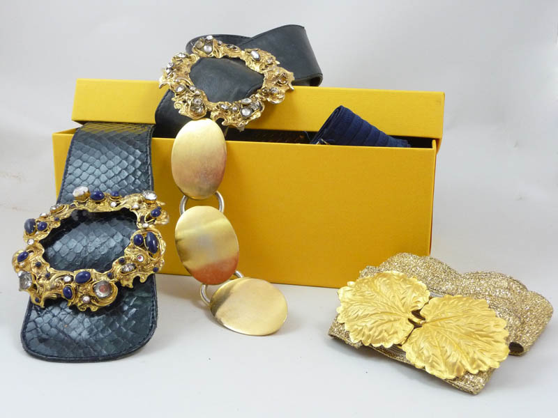 GRANDE LOTTO DI CINTURE - BIG BELTS LOT di varie tipologie, alcune con fibbie impreziosite da pietre colorate e una in metallo dorato ad anelli, lievi difetti (13)