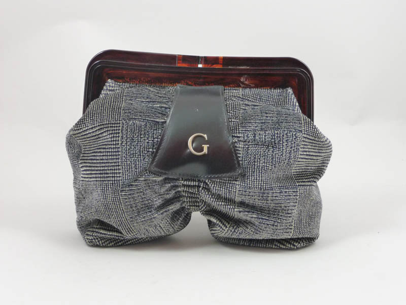 POCHETTE IN LANA - WOOL CLUNTCH applicazione in pelle nera, lievi difetti