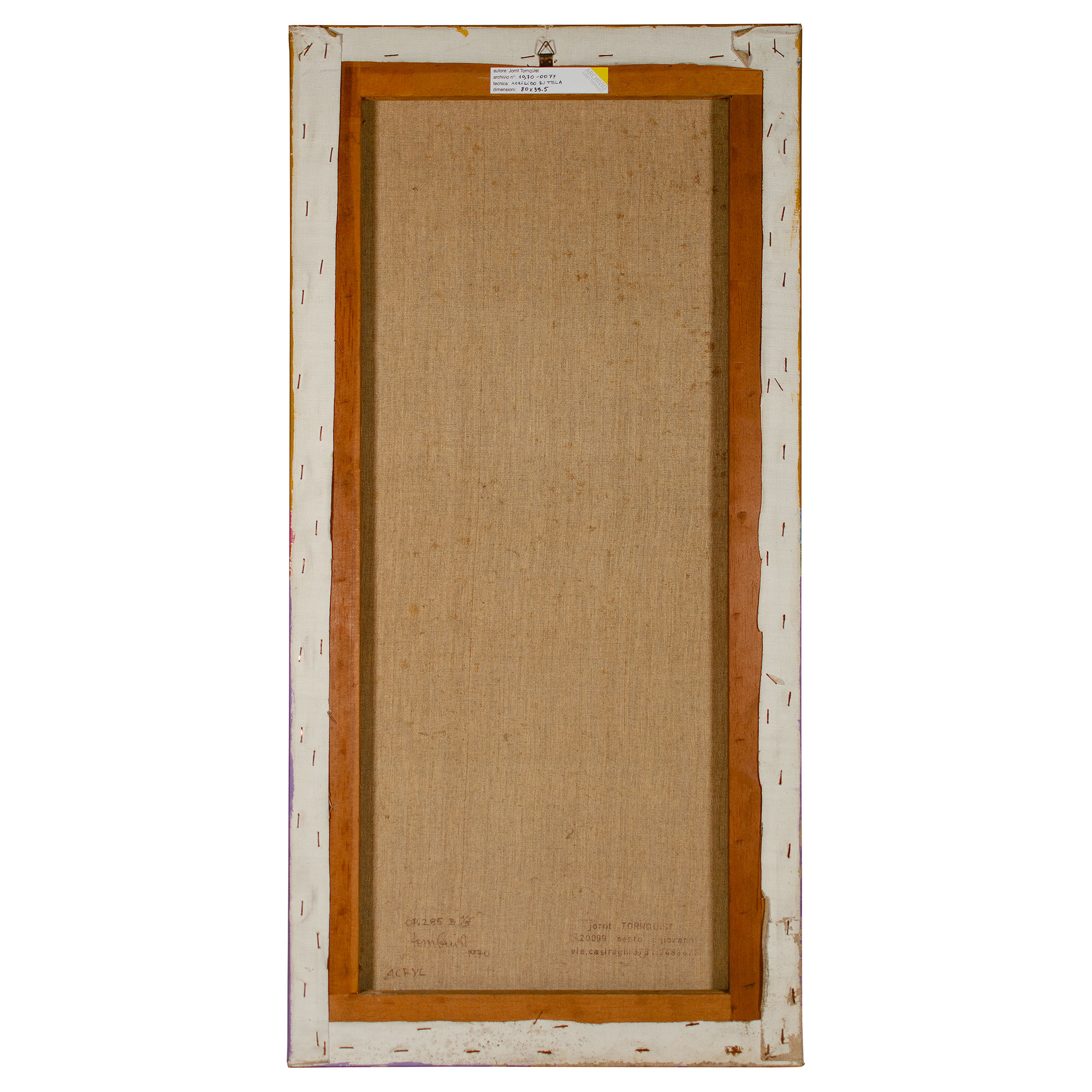 Etichetta dell’Archivio Jorrit Tornquist al verso sul telaio.