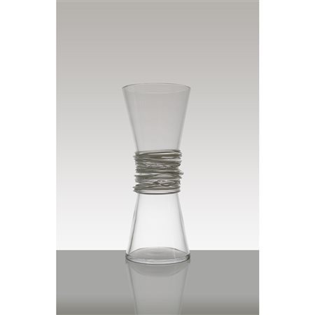 Vaso in vetro con applicazioni in vetro lattimo sulla parte centrale;