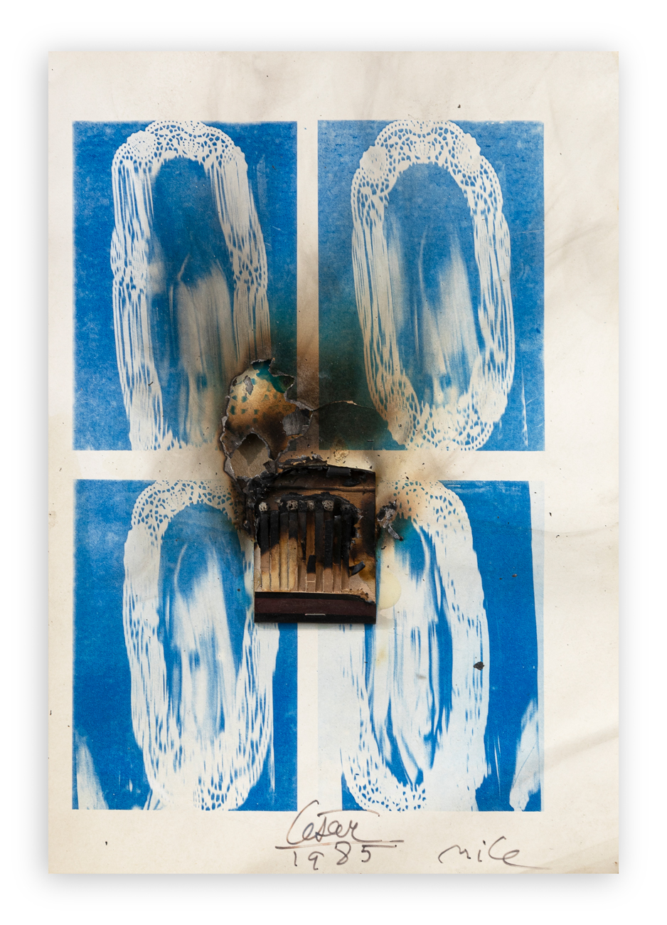 Fiammiferi bruciati su cartoncino pieghevole di invito di Scotch Tea House