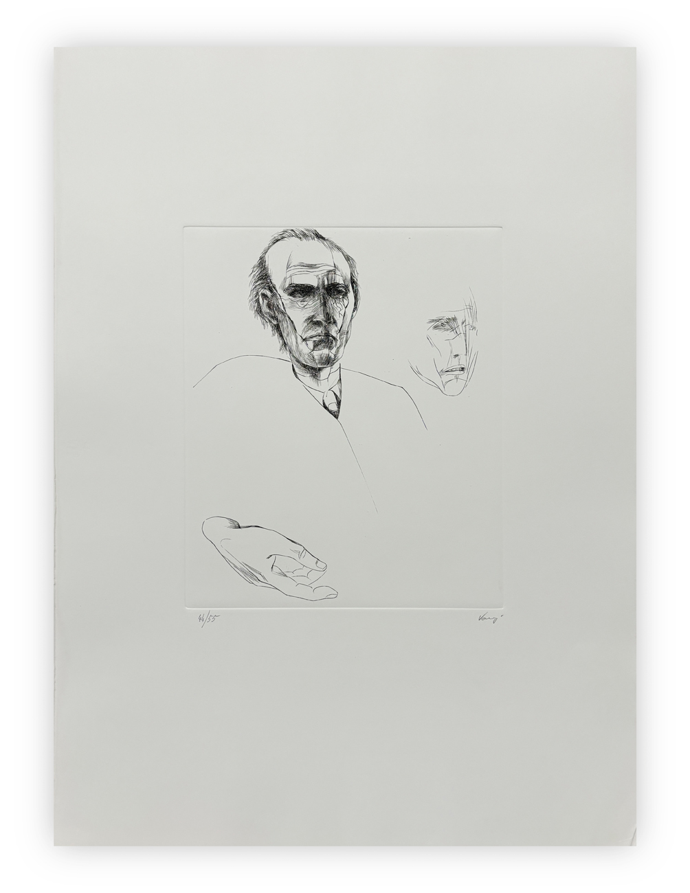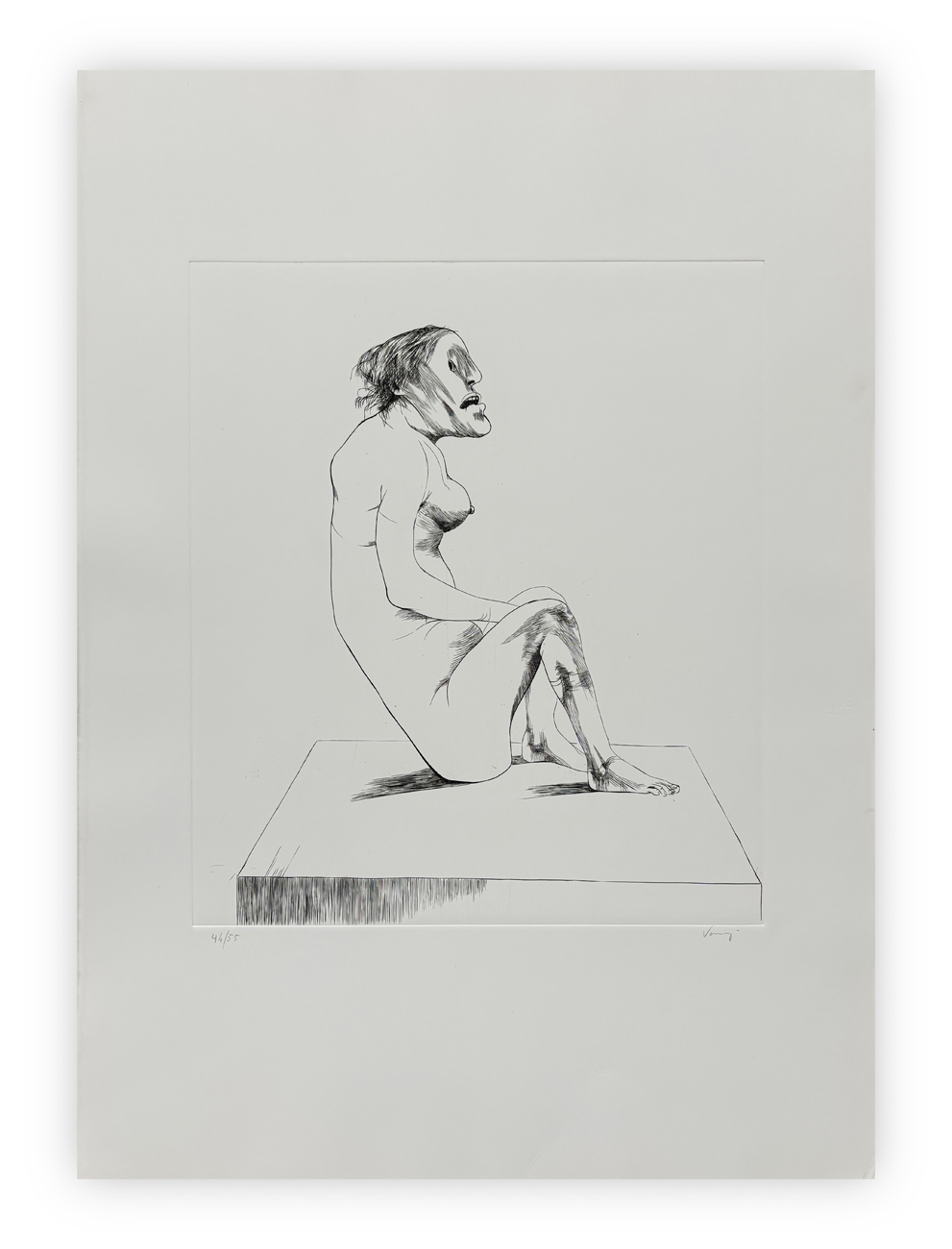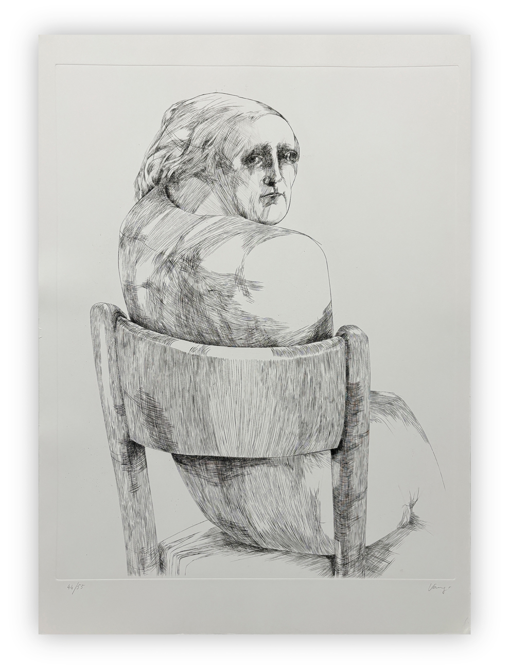 Cartella contenente testo di presentazione di Pier Carlo Santini e sei incisioni a bulino di Giuliano Vangi, ciascuna recante firma e numerazione (Esemplari 44/55) a matita al fronte