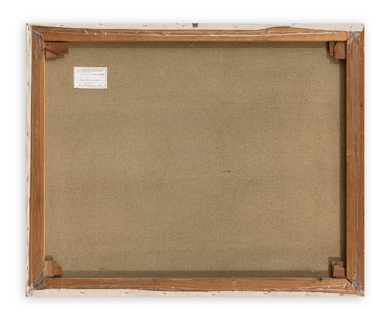Etichetta e timbri dell'Archivio Generale dell'Opera Pittorica di Mario Schifano - Fondazione Mario Schifano al retro