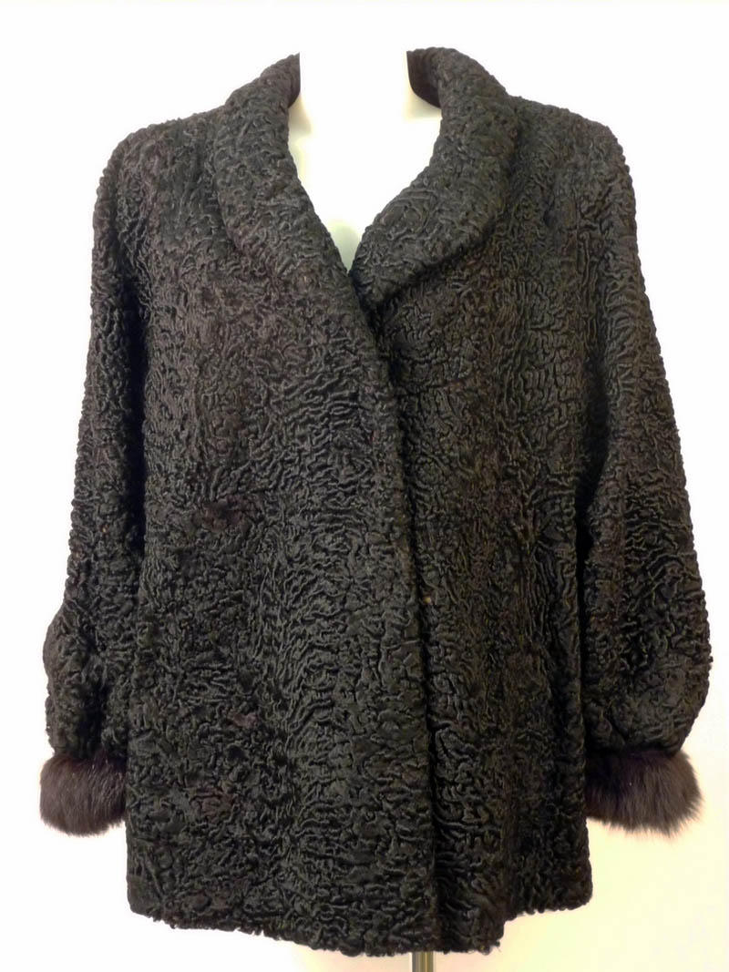 CAPPOTTO IN ASTRAKAN NERO - BLACK ASTRAKAN COAT difetti, tg L circa
