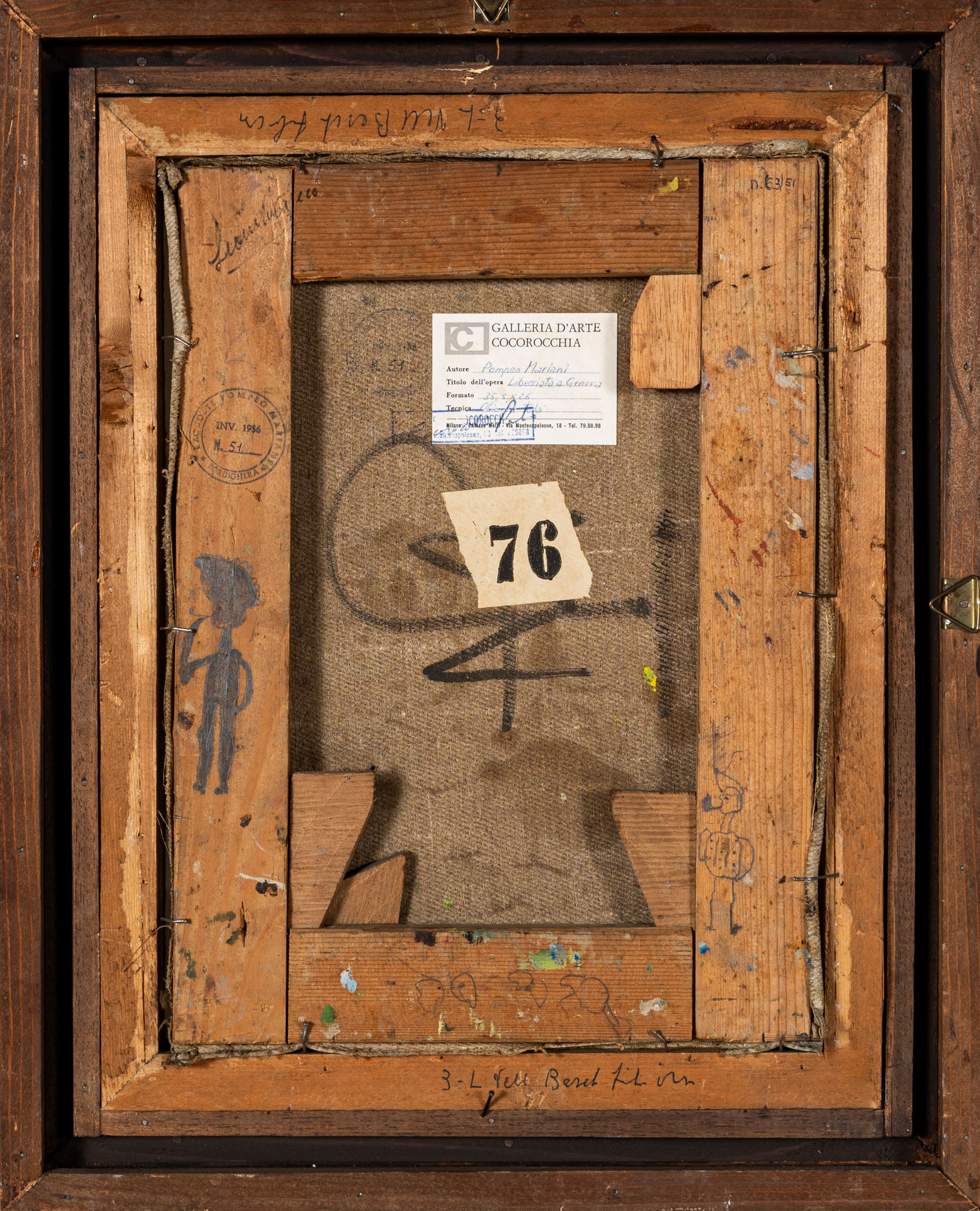 POMPEO MARIANI(1857 - 1927)Libecciata a Genova1884Olio su tela35,5 x 26 cmSiglato e datato in basso a destraSigla al retroTitolo su etichetta al retroTimbri Raccolte Pompeo Mariani - Bordighera, con il n. 51 al retroPROVENIENZA:Raccolta MarianiGalleria d'Arte Cocorocchia, Milano (etichetta e timbro al retro)Collezione privata, BiellaESPOSIZIONI:1967, Mostra di Pompeo Mariani, Galleria d'Arte Cocorocchia, MilanoBIBLIOGRAFIA:M. di Giovanni Madruzza, A. Ranzi, Pompeo Mariani. Catalogo ragionato, Federico Motta Editore, 1997, n. 115, p. 151 (ill.)AA. VV., Mostra di Pompeo Mariani, catalogo della mostra tenutasi presso la Galleria d'Arte Cocorocchia, Milano, Nicodemi, n. 51, tav. XXXIX