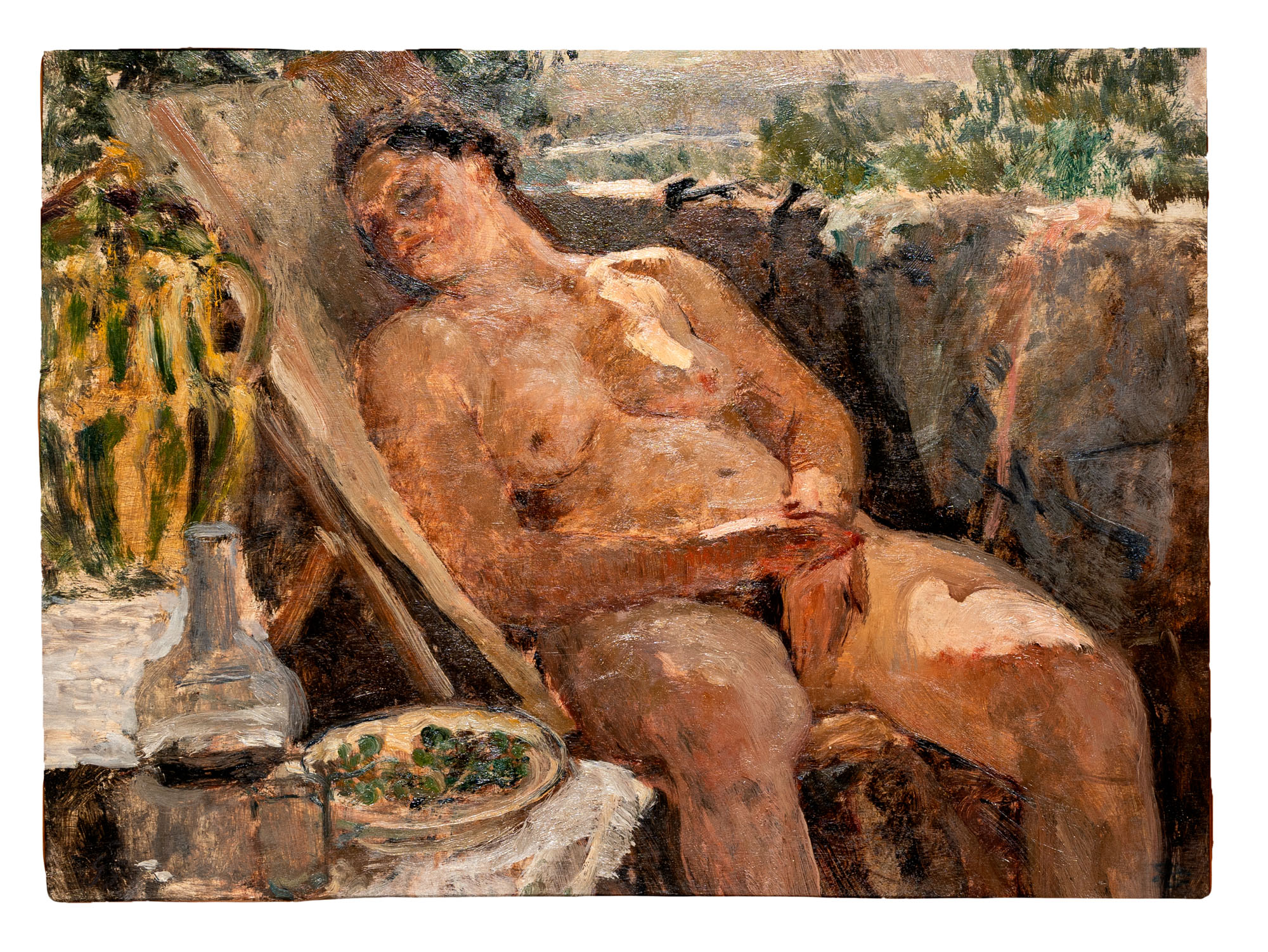GIUSEPPE GRAZIOSI(1879 - 1942)Senza titolo (Nudo disteso)Olio su tavola74 x 98 cmSiglato in basso a destraPROVENIENZA:Collezione privata, Modena