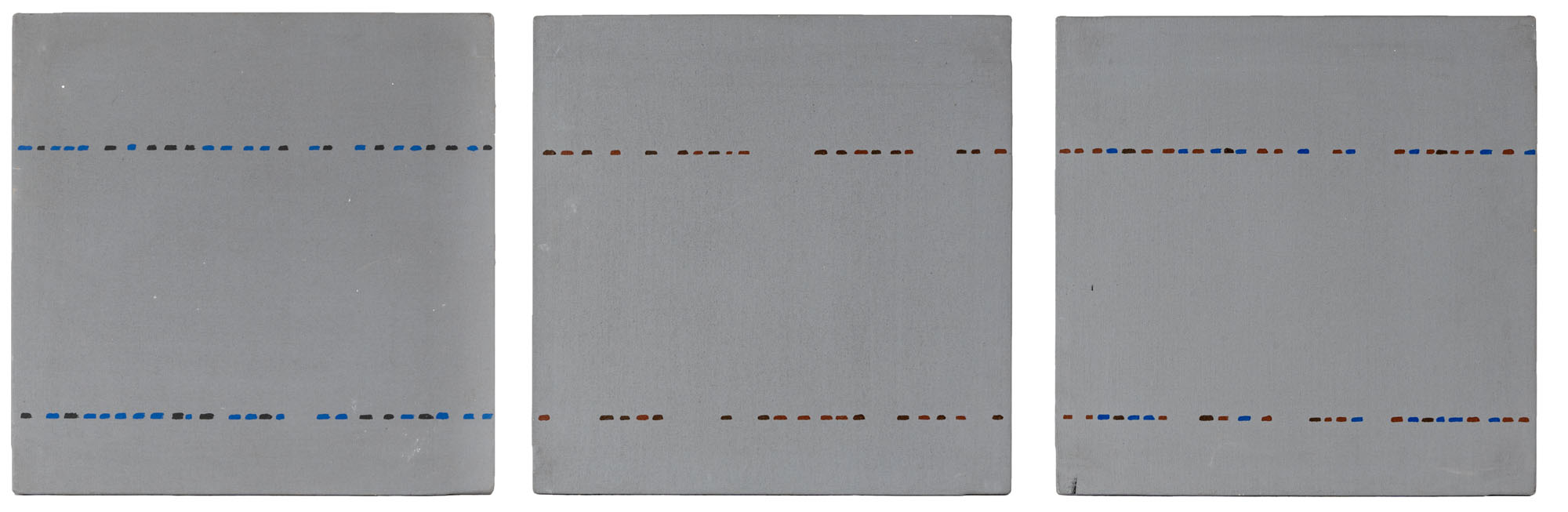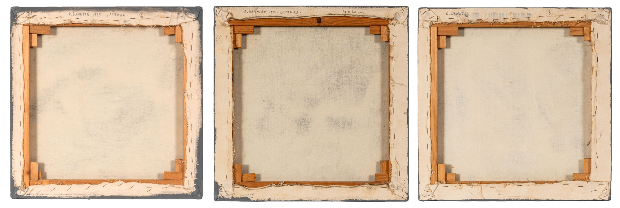RADOMIR DAMNJANOVIC DAMNJAN(1935)Pittura1975Trittico, acrilico su telaDimensioni di ciascuna tela: 40 x 40 cmFirma, data e titolo al retro di ogni elementoPROVENIENZA:Collezione privata, Milano