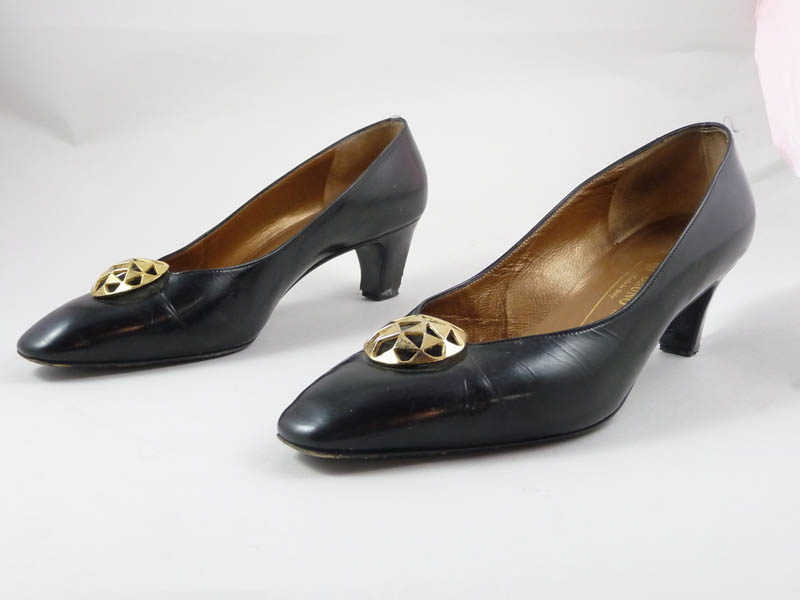 DECOLLETÈ IN PELLE NERE - BLACK LEAATHER SHOES Bruno Magli tacco basso, decorazione in metallo traforato, difetti tg 39