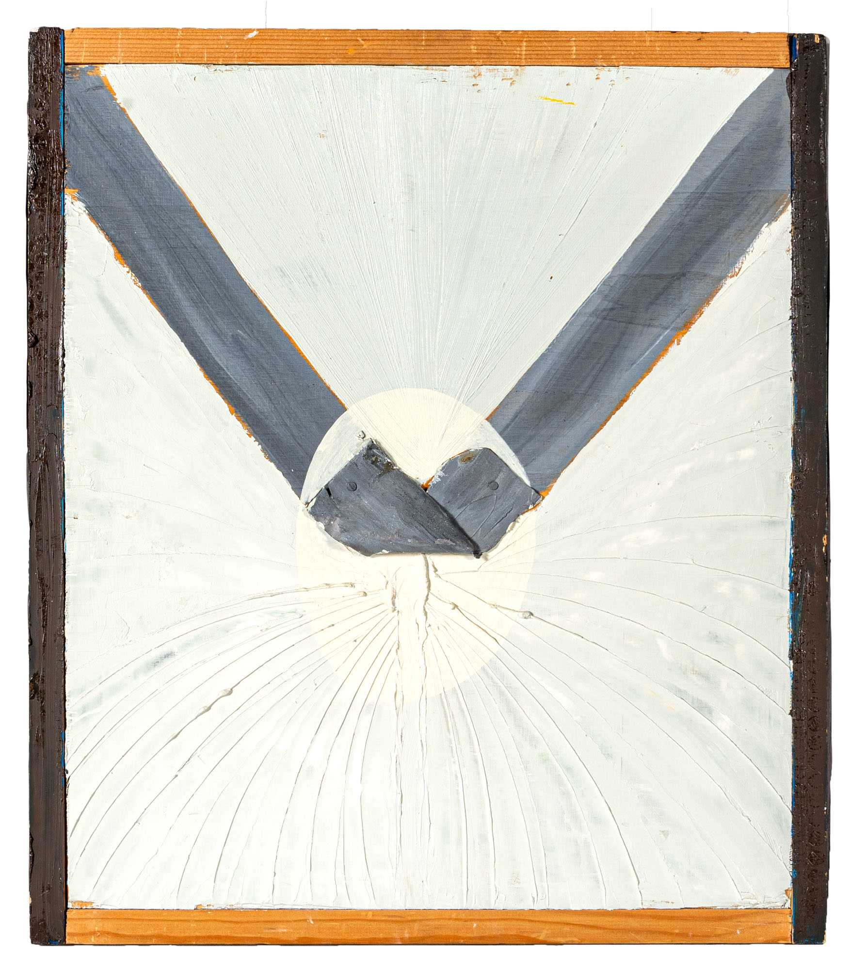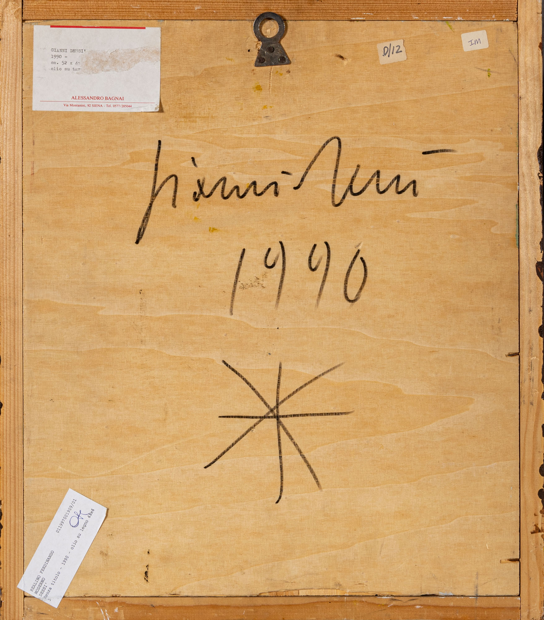 GIANNI DESSÌ(1955)Senza titolo1990Olio e applicazione in metallo su tavola48 x 41 cmFirma e data al retroPROVENIENZA:Galleria Alessandro Bagnai, Siena (etichetta al retro)Collezione privata, Milano