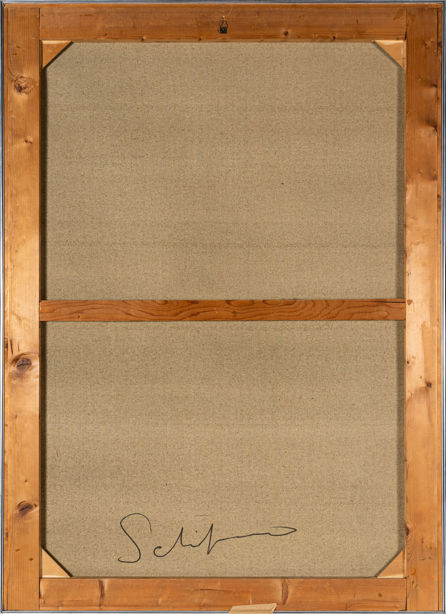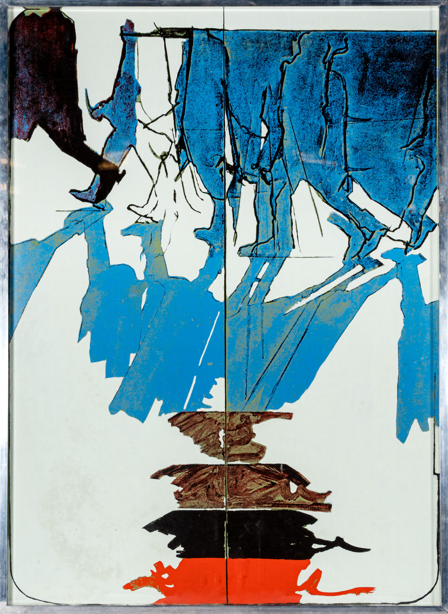 MARIO SCHIFANO(1934 - 1998)Senza titoloPrima metà anni '70Serigrafia monotipo su tela140,5 x 100,5 cmFirma al retroOpera accompagnata da certificato di autenticità a cura dell'Archivio Mario Schifano, RomaPROVENIENZA:Collezione Corticelli, BolognaCollezione privata, Torino