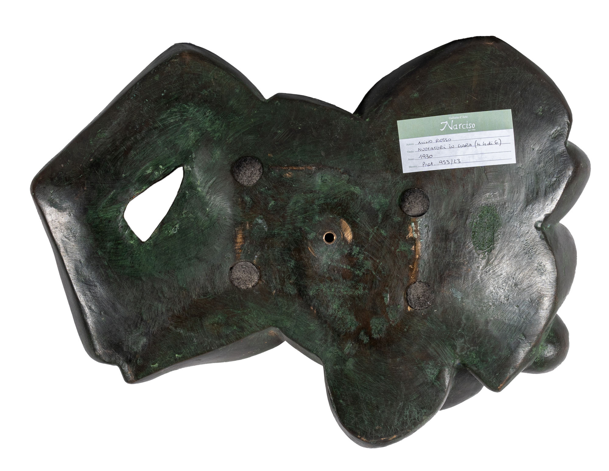 MINO ROSSO(1904 - 1963)Nuotatori in gara1930Scultura in bronzo, es. 4/6, Avenati Fonditore, Torino (timbro)13 x 50 x 36 cm circaFirma, data e numerazione incise su un latoPROVENIENZA:Galleria d'Arte Narciso, Torino (etichetta sotto la base)Collezione privata, TorinoESPOSIZIONI:1933, Mostra dello sport nell'arte, Roma1960, Promotrice di Torino27 marzo - 30 aprile 1962, Aspetti del Secondo Futurismo torinese, Galleria Civica d'Arte Moderna, TorinoLuglio - settembre 1963, Aspetti dell'arte contemporanea, Scuola d'Arte F. Faccio, Castellamonte - L'Aquila1966, Diulgheroff, Mino Rosso, Farfa, Galleria Rizzato-Whitworth, Milano23 settembre - 15 ottobre 1967, Mino Rosso, Galleria d'Arte Narciso, TorinoNovembre - dicembre 1967, Mino Rosso, Galleria Milano, MilanoAprile - maggio 1968, The Futurism, Galerie Krugier, GinevraGiugno - agosto 1968, Aspects du Futurisme, Galerie d'Art Moderne M. S. Feigel, BasileaNovembre - dicembre 1968, The Futurism, Albert Loeb & Krugier Gallery, New York2 - 22 ottobre 1971, Mostra retrospettiva dello scultore futurista Mino Rosso, Galleria Il Vicolo, Genova15 luglio - 15 settembre 1973, Sculture, ambientazioni, visualizzazioni, progettazioni per l'alabastro, Volterra '733 - 25 novembre 1973, Mino Rosso, Galleria Jacopo della Quercia, Siena16 ottobre - 16 novembre 1976, Mino Rosso, Galleria d'Arte Narciso, Torino24 ottobre 2009 - 31 gennaio 2010, Scultura futurista 1909 - 1944. Omaggio a Mino Rosso, Galleria Cavour, PadovaBIBLIOGRAFIA:E. Crispolti, Il Secondo Futurismo: 5 pittori + 1 scultore, Torino, 1923 - 1938, Fratelli Pozzo, Torino, 1962, n. 26Aspetti dell'arte contemporanea, catalogo della mostra tenutasi presso la Scuola d'Arte F. Faccio, Castellamonte - L'Aquila, 1963Mino Rosso, catalogo della mostra tenutasi presso la Galleria d'Arte Narciso, Torino, 1967The Futurism, catalogo della mostra tenutasi presso la Albert Loeb & Krugier Gallery, New York, 1968Sculture, ambientazioni, visualizzazioni, progettazioni per l'alabastro, catalogo della mostra tenutasi presso Volterra '73Mino Rosso, catalogo della mostra tenutasi presso la Galleria d'Arte Narciso, Torino, 1976 (ill.)B. Buscaroli, R. Floreani, A. Possamai Vita, Scultura futurista 1909 - 1944. Omaggio a Mino Rosso, catalogo della mostra tenutasi presso la Galleria Cavour, Padova, Silvana Editoriale, Milano, 2009, p. 99 (ill.)