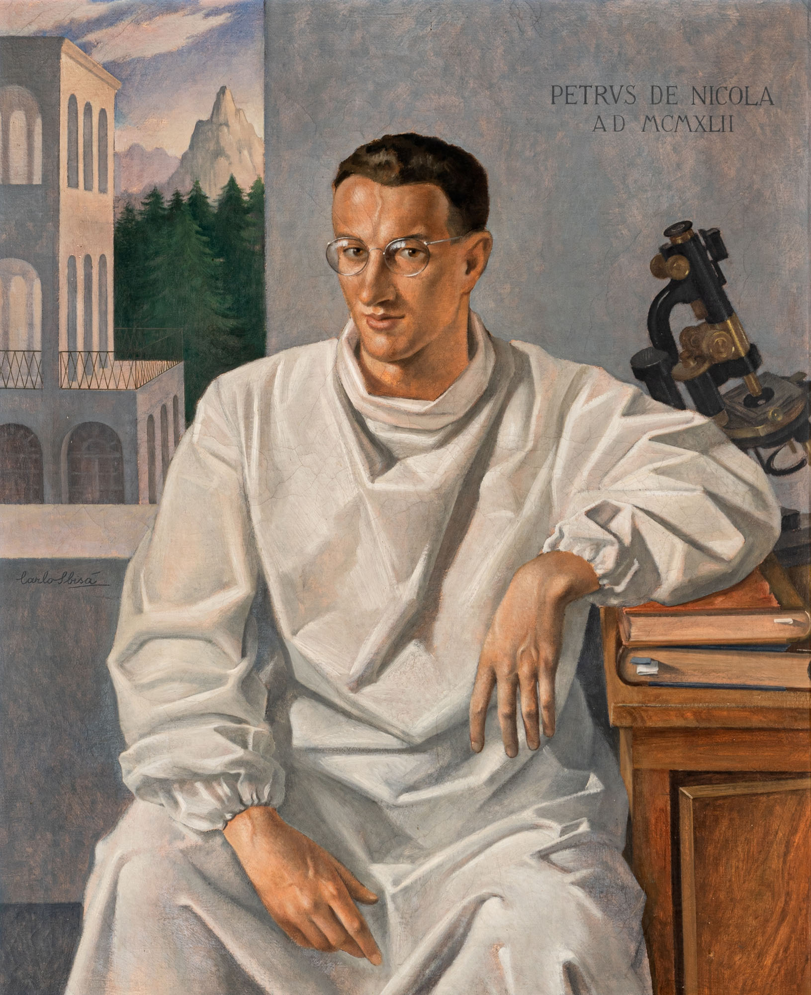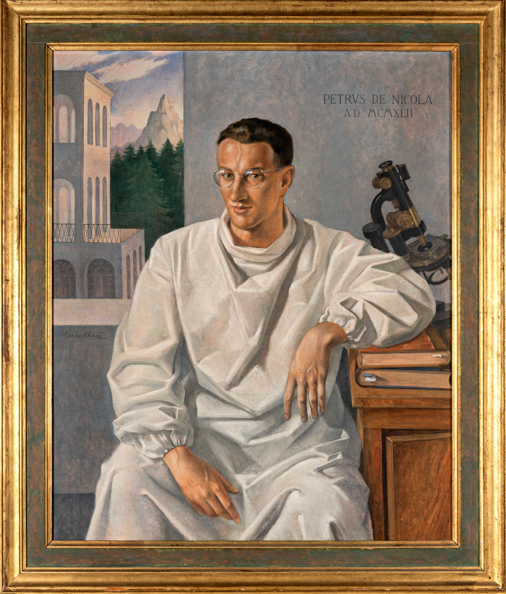 CARLO SBISÀ(1899 - 1964)Ritratto del dr. Pietro de Nicola1942Olio su tela109 x 89 cmFirmato a sinistra al centroTitolato e datato a destra al centroL'opera raffigura il giovane medico Pietro de Nicola (Bologna, 1919 - Pavia, 1993), professore universitario titolare di Cattedra di Gerontologia e Geriatria all'Universtà degli Studi di Pavia dal 1968 al 1990. Fondò e sviluppò nel mondo la Scuola di Specialità in Gerontologia e Geriatria e fu insignito della cittadinanza onoraria di San Paolo del Brasile per aver avviato lo studio di queste materie sul territorio brasiliano.PROVENIENZA:Atelier dell'artistaCollezione privata, Pavia (ricevuto direttamente dall'artista e per discendenza fino all'attuale proprietario)ESPOSIZIONI:21 - 31 dicembre 1945, Galleria Italiana d'Arte (etichetta al retro)
