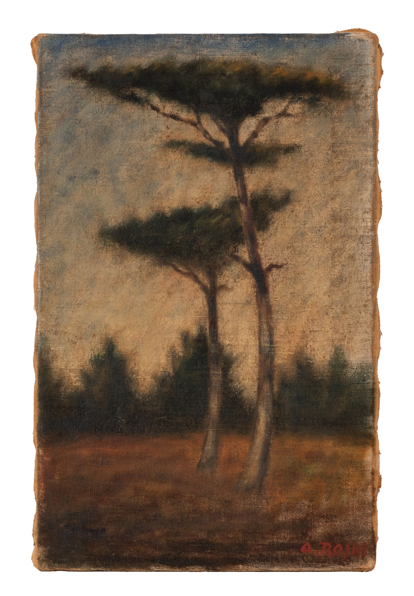 OTTONE ROSAI(1895 - 1957)Due pini1942-1944Olio su tela45 x 28,5 cmFirmato in basso a destraOpera accompagnata da autentica su fotografia a cura di Luigi Cavallo, MilanoPROVENIENZA:Collezione privata, Milano