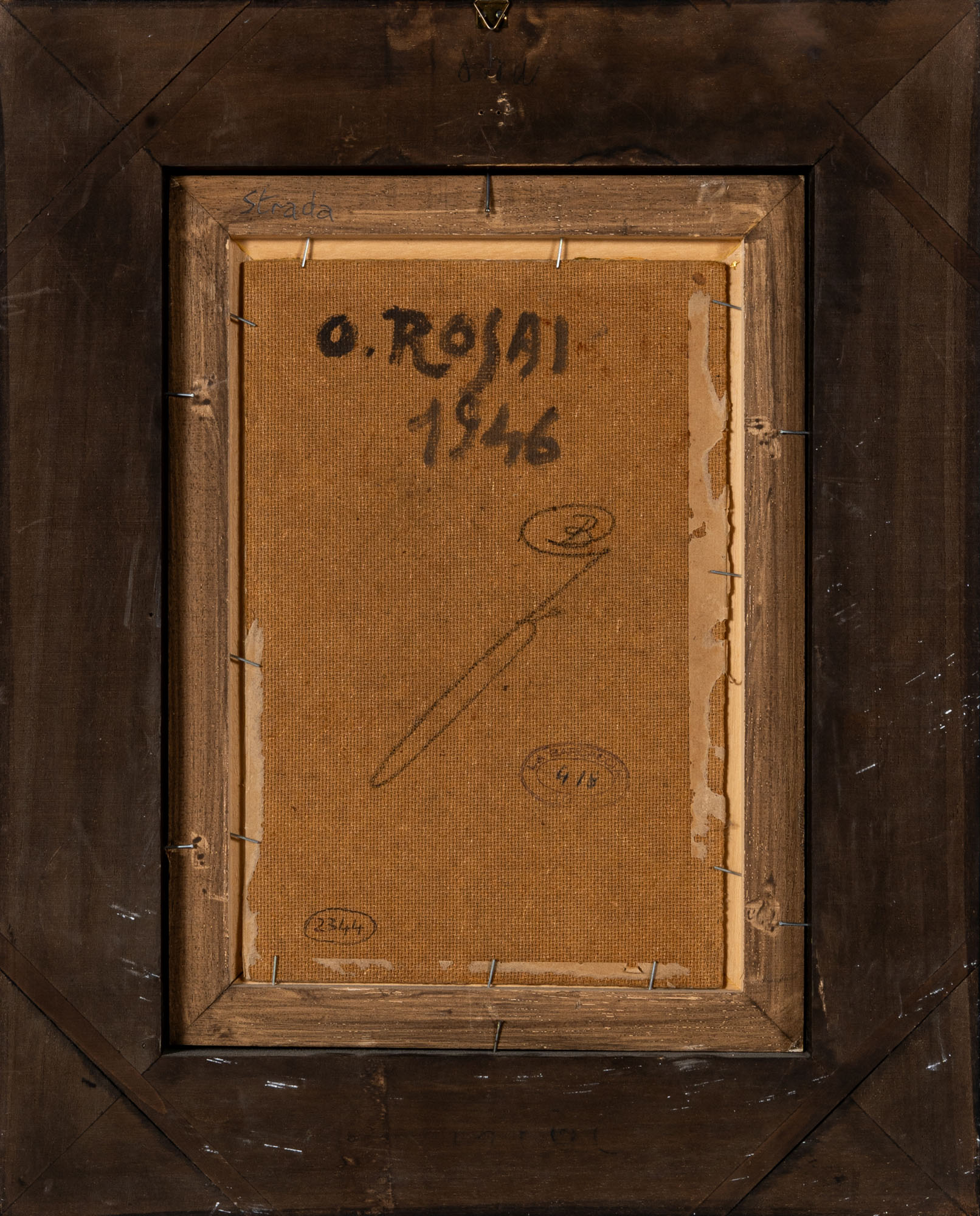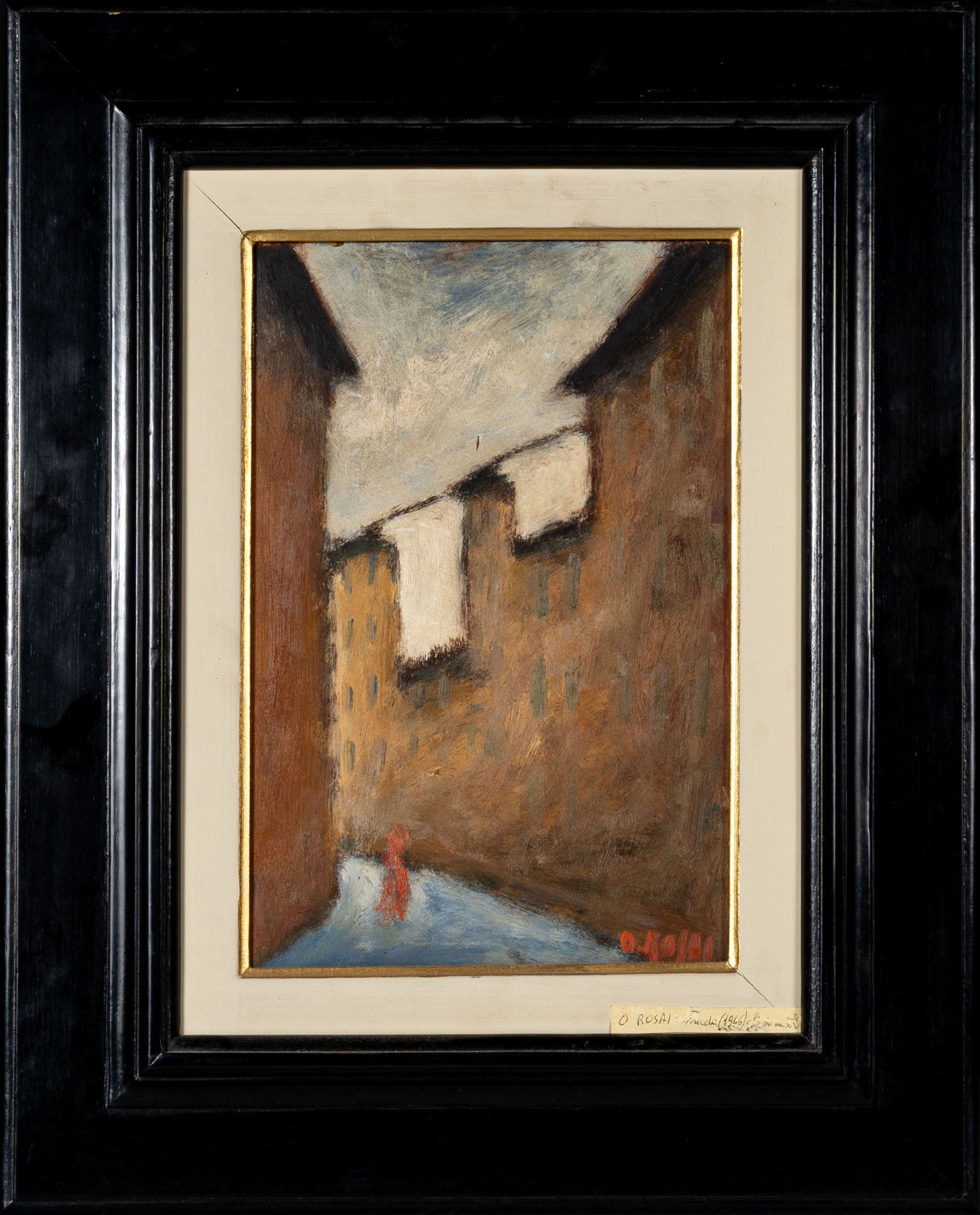OTTONE ROSAI(1895 - 1957)Strada1946Olio su masonite30 x 20 cmFirmato in basso a destraFirma e data al retroOpera accompagnata da autentica su fotografia a cura di Luigi CavalloPROVENIENZA:Galleria La Barcaccia, Roma (timbro al retro)Collezione privata, Padova