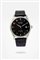 Quadrante nero con numeri arabi applicati, datario al 3 e indicazione centrale dei secondi continui.