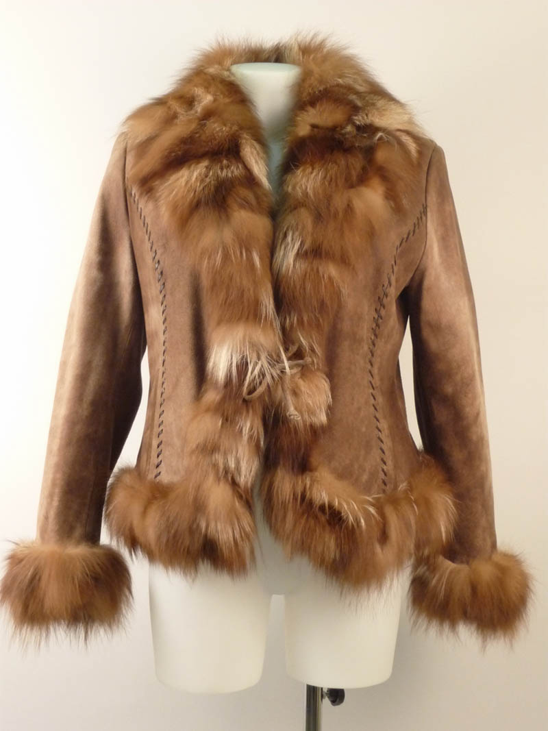 GIACCA IN PELLE SUEDE MARRONE BORDATA IN PELLICCIA - LEATHER SUEDE JACKET...