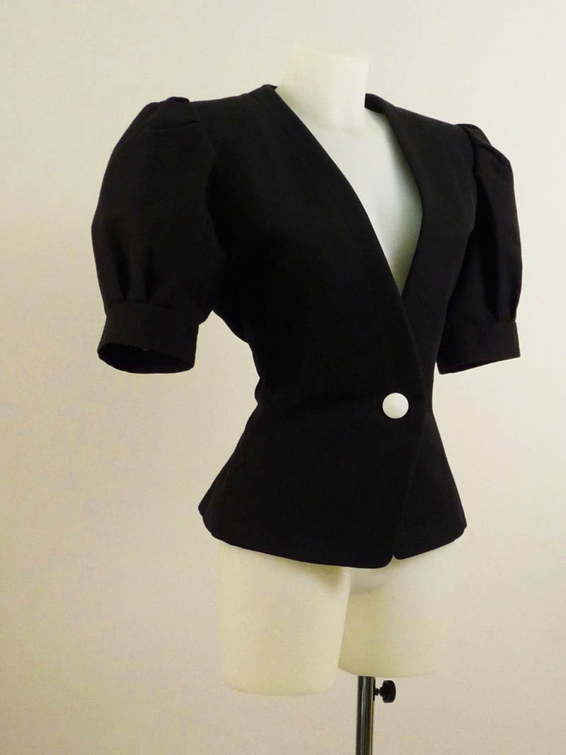 GIACCHINA NERA IN TESSUTO - FABRIC BLACK JACKET Saint Laurent Rive de Gauche, Anni Ottanta chiusura ad un bottone, maniche corte a sbuffo tg M circa