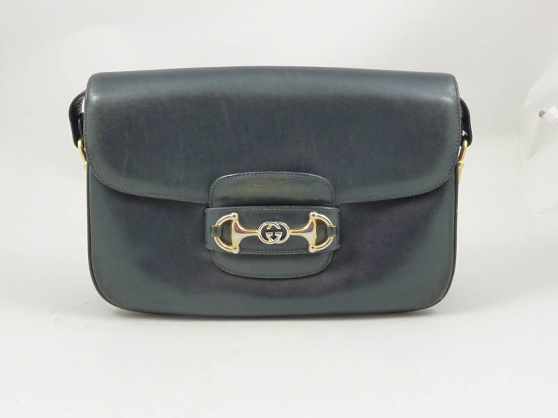 BORSA IN BELLE BLU - BLUE LEATHER BAG Gucci, Anni Settanta modello a spalla e tracolla in pelle, dettagli su chiusura in metallo dorato, lievi difetti