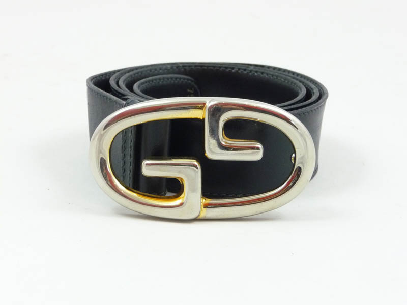 CINTURA IN PELLE BLU - BLUE LEATHER BELT Gucci, Anni Settanta fibbia in metallo dorato, lievi difetti