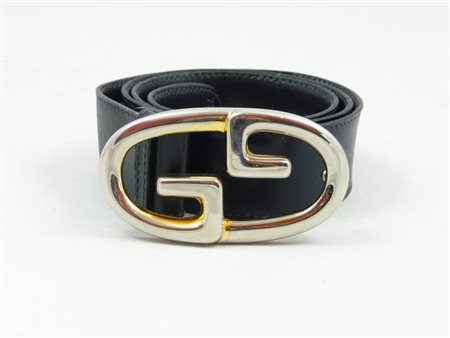 CINTURA IN PELLE BLU - BLUE LEATHER BELT Gucci, Anni Settanta fibbia in...