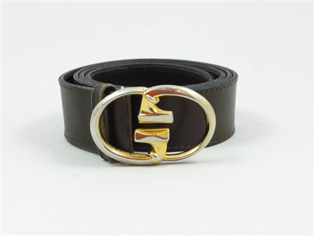 CINTURA IN PELLE MARRONE - BROWN LEATHER BELT Gucci, Anni Settanta fibbia in...