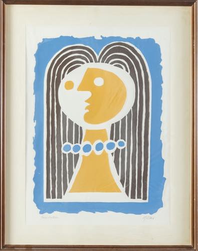 Léon Gischia (Dax 1903 - Parigi 1991). Le collier bleu. Cm. 63x45,5. Litografia a colori su carta. Prova d'artista. Firmata a matita in basso a destra. Entro cornice.