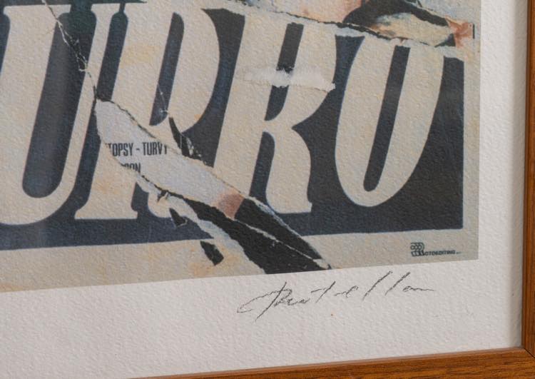 Mimmo Rotella (Catanzaro 1918 - Milano 2006). L'angelo azzurro. Cm. 100x70. Multiplo décollage, es. 55/125. Firma a matita sul margine in basso a destra Rotella. Tiratura a matita in basso a sinistra 55/125. Al verso etichetta e dichiarazione di autenticità L'Ariete, Lido degli Estensi (FE).
