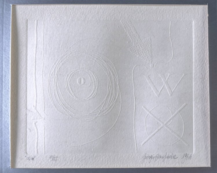 Giorgio Bompadre (1929 - 2005). Wo, 1964. Cm. 10x12. Calcografia su carta. Firmata e datata a matita in basso a destra. Titolata e numerata a matita in basso a sinistra 10/25.