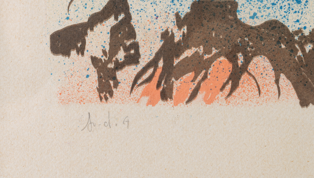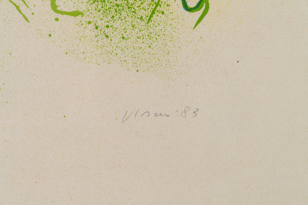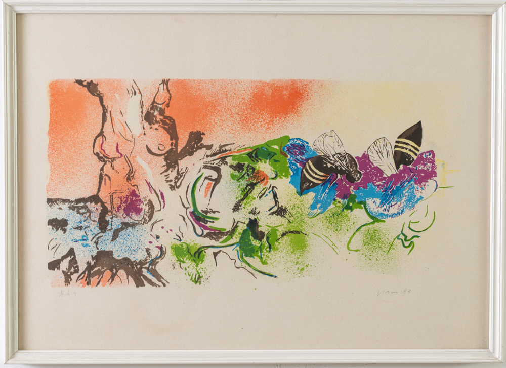 Enrico Visani (Marradi, 1938). Le Api. Lastra cm. 30x60. Con cornice cm. 52x71,5. Litografia a colori. Prova d'artista.