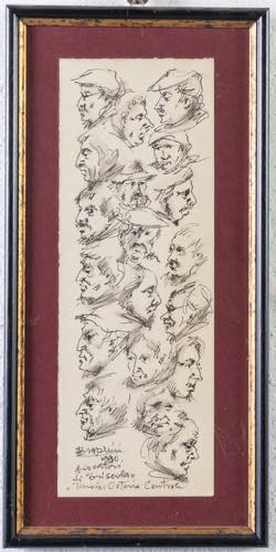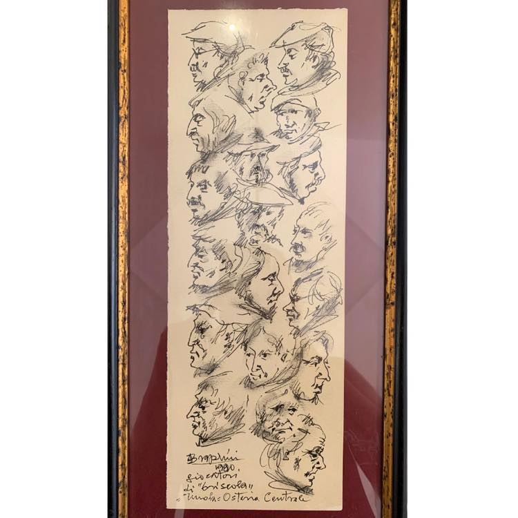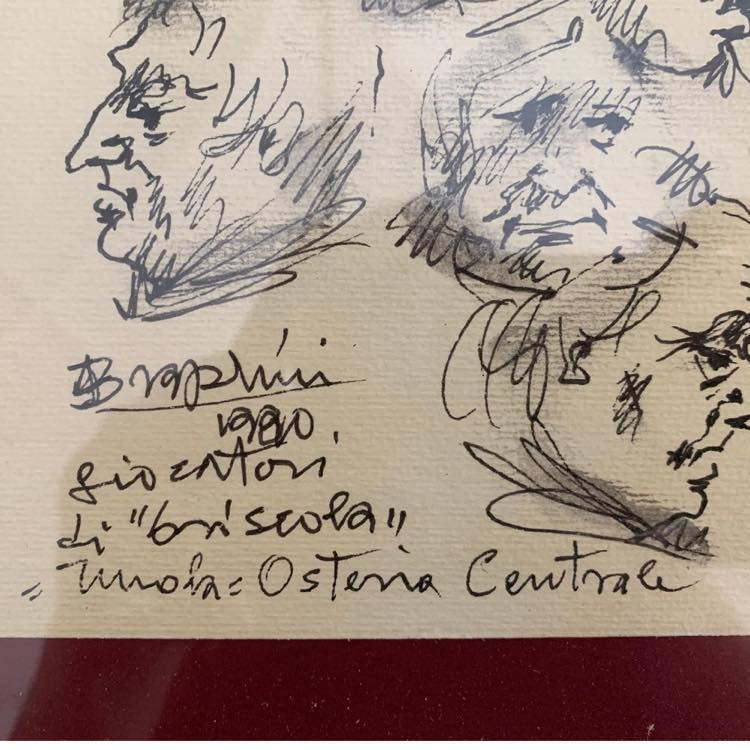 Angelo Bragalini (Fidenza 1913 - Bologna 1994). Giocatori di briscola, 1990. Cm. 35,5x12,5. In cornice cm. 43x21. Tecnica mista su carta. Firmato. datato Bragalini 1990, Imola Osteria Centrale.