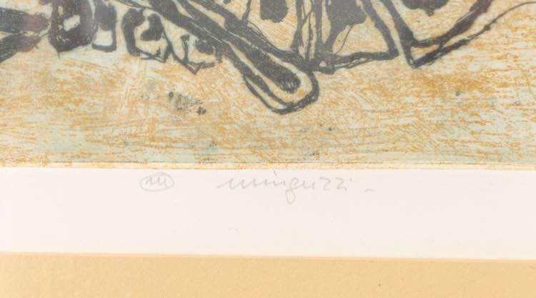 Luciano Minguzzi (Bologna 1911 - Milano 2004). Senza titolo. Cm. 41x56. Litografia a colori su carta. Firmata a matita in basso a destra Minguzzi. Numeri di tiratura a matita in basso a sinistra 68/70.