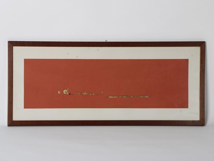 Li Yuan-chia (Guangxi 1929 - Carslile 1994). Senza titolo, 1962. Cm. 20x70. Con cornice cm. 33x84. Inchiostro, tecnica mista e collage su carta applicata su tavola. Firmato e datato in basso a destra. Lotto pendant del successivo.