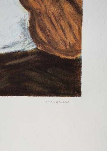 Foglio cm. 80x65. Lastra cm. 56,8x46,6. Litografia a colori su carta. Opera firmata in basso a destra Migneco. Reca numeri di tiratura in basso a sinistra P.A.