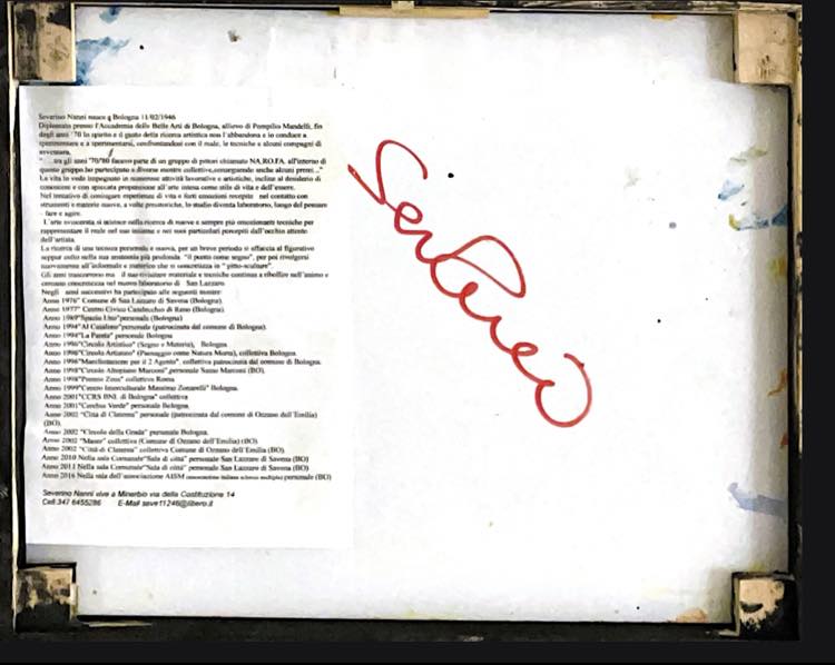 Severino Nanni (Bologna 1946). Senza titolo. Cm. 39,5x49,5. In cornice cm. 41,5x51,5. Tecnica mista su cartoncino. Firmato al retro Severino.