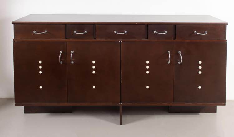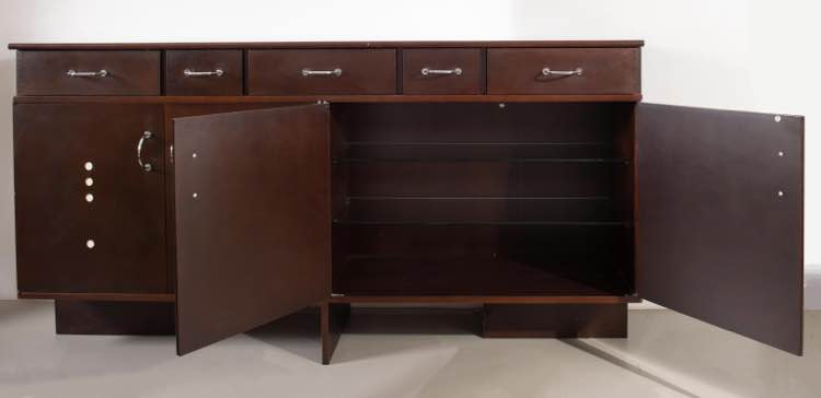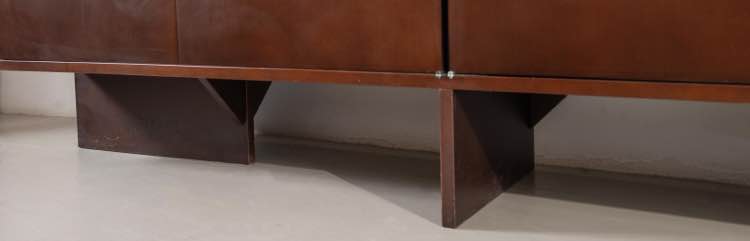 Giandomenico Belotti. Credenza in legno con ripiani interni in vetro.