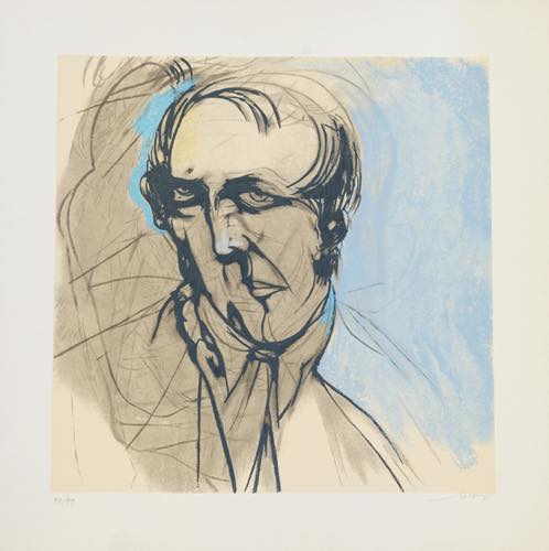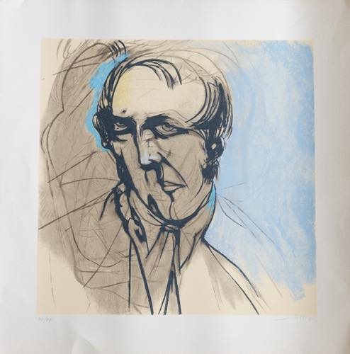 Ritratto. Foglio cm. 65x65. Multiplo a colori su carta. Esemplare n. 97/99. Firmato in basso a destra.