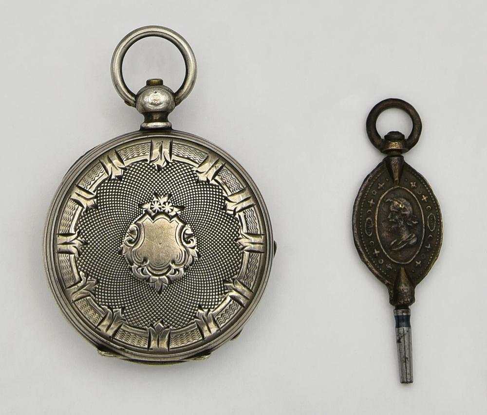 Orologio da tasca con chiave, Francia, primi '900, argento 800/1000
