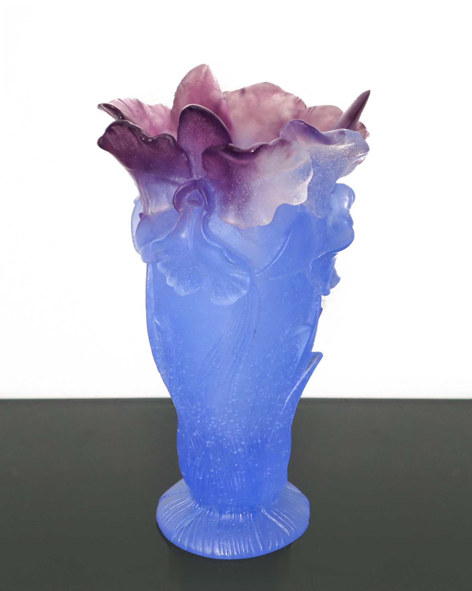 Daum France - Vaso e piccolo piatto in cristallo Daum mod. Orchidea, 20th secolo
