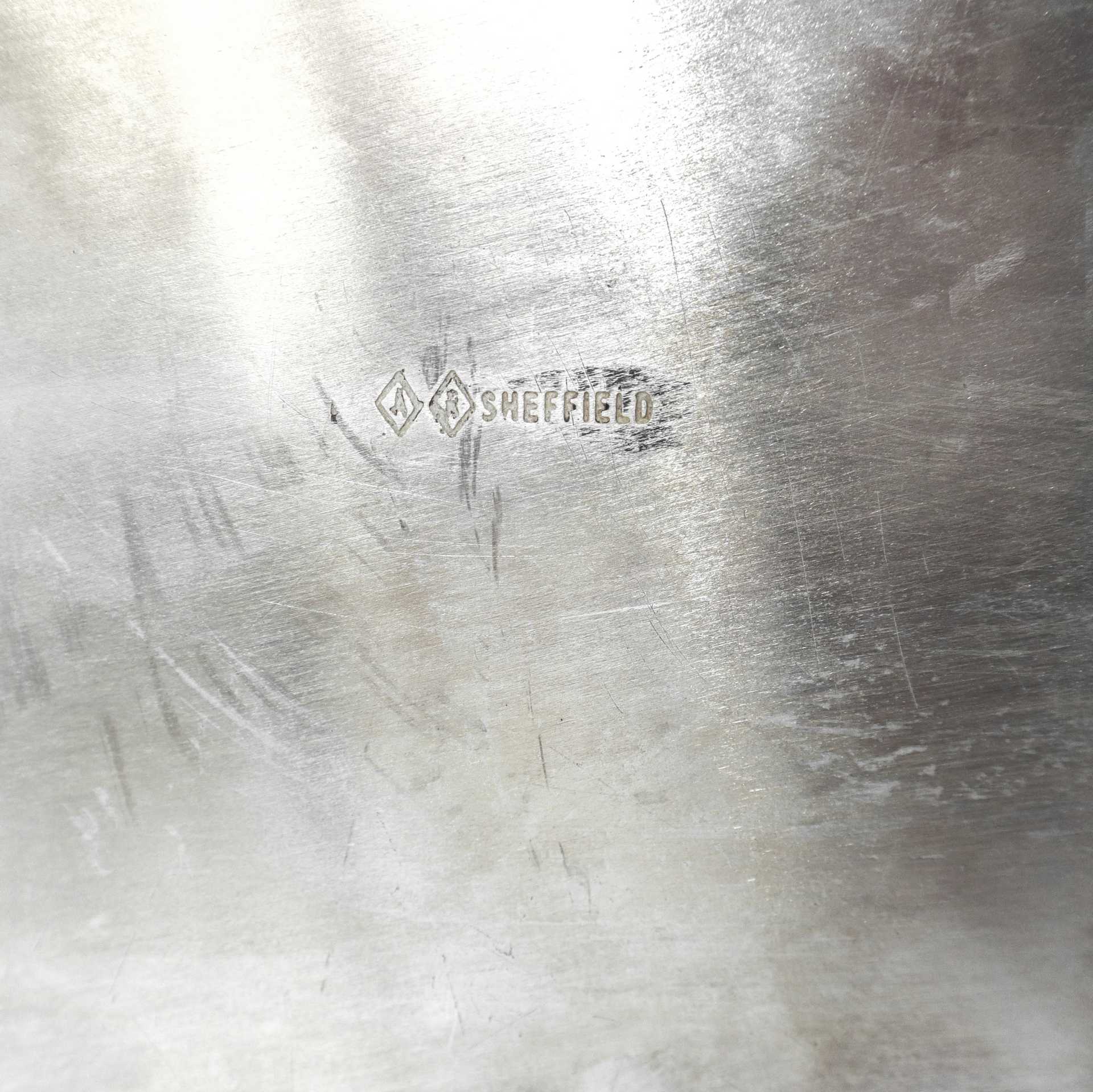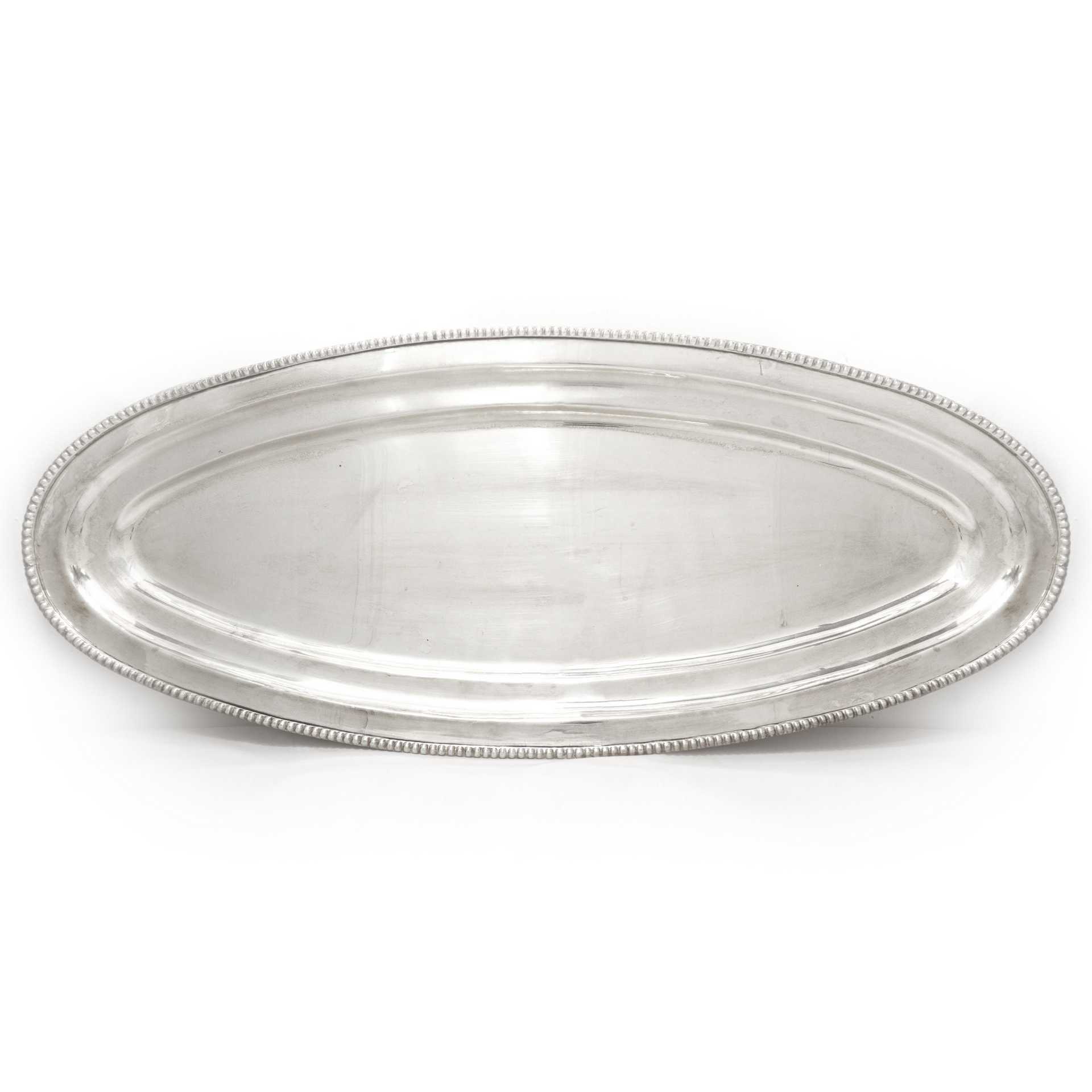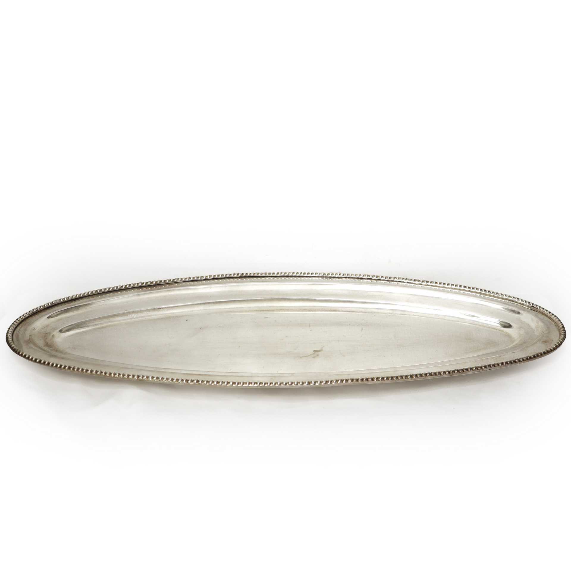 Grande vassoio ovale in sheffield con bordo decorato