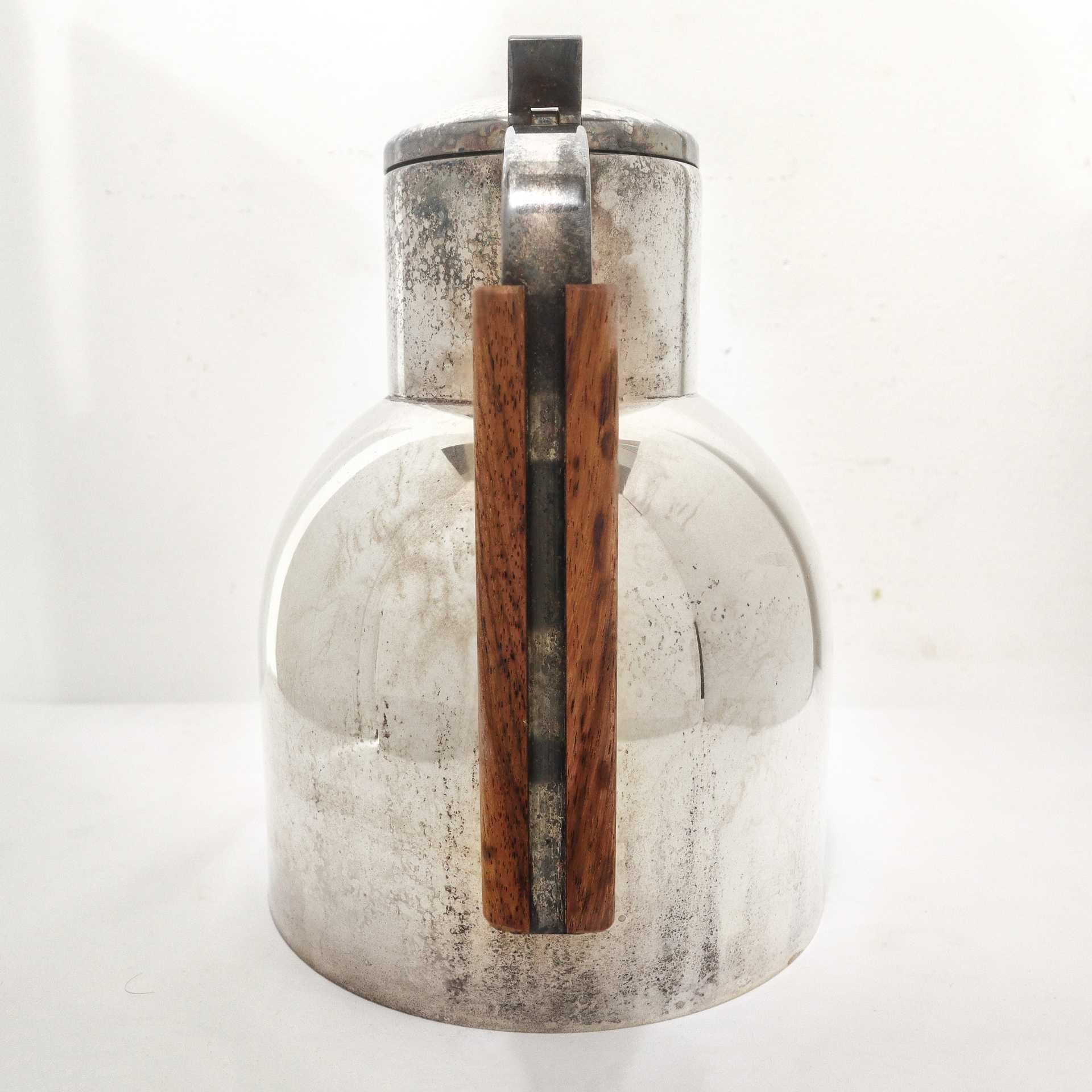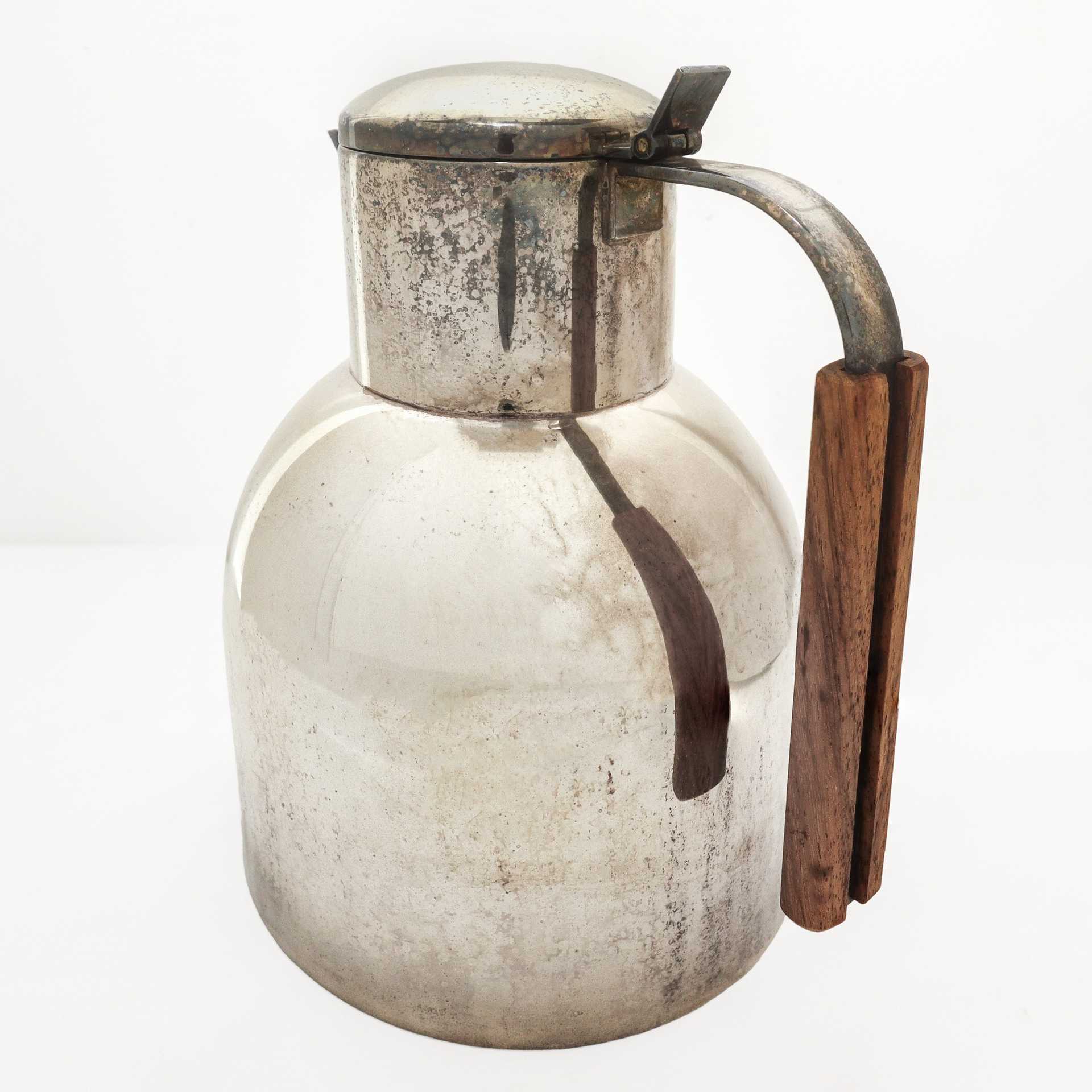 Caraffa termica in sheffield con manico in legno, 20th secolo h cm 26
