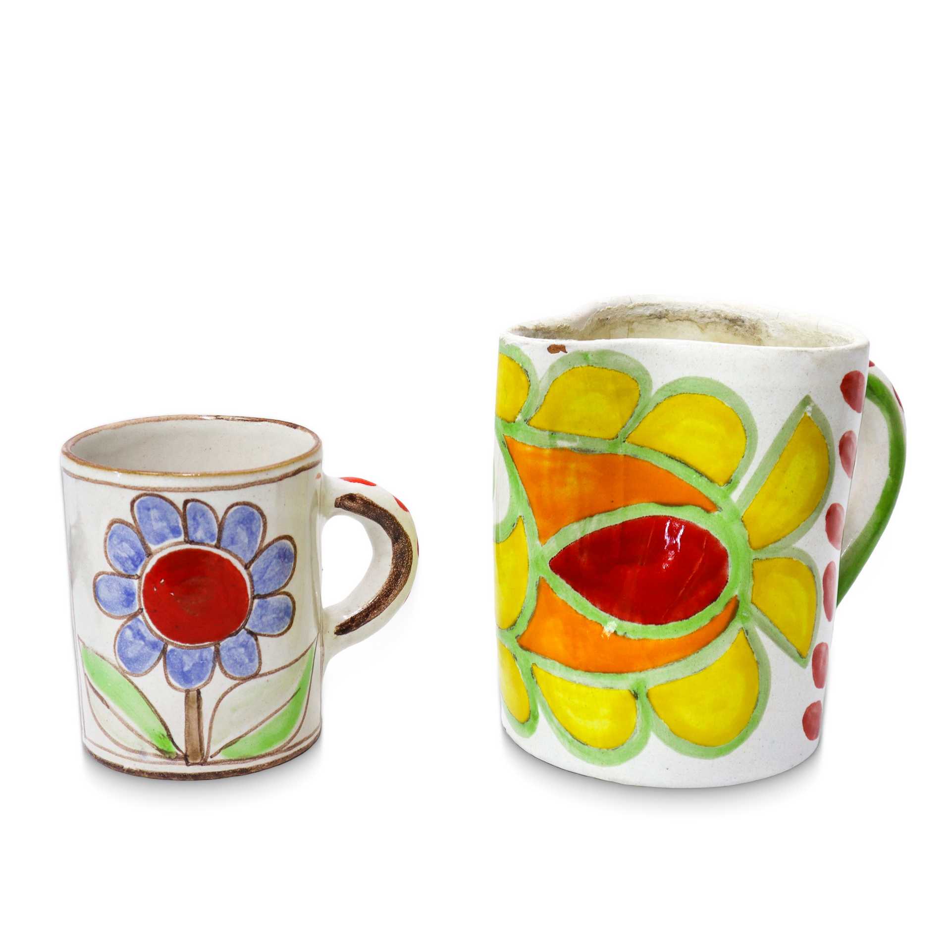 Lotto 150 | De Simone - Boccale e bicchiere in ceramica dipinta a mano con pesce e pianta rossa, 1960/1970