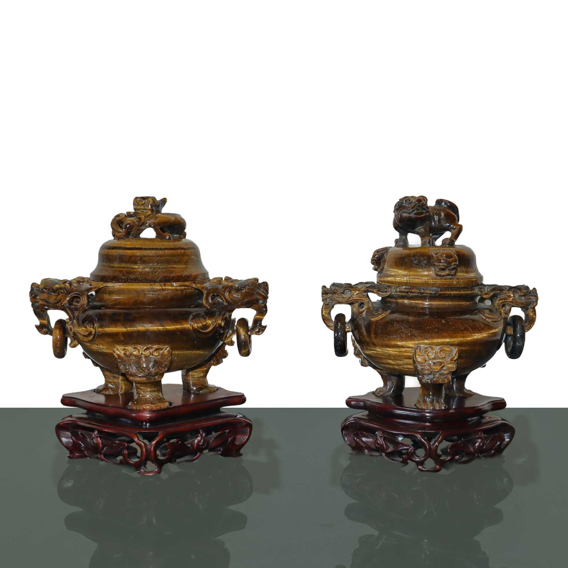 Lotto 167 | Coppia di poutiche cinesi in occhio di tigre