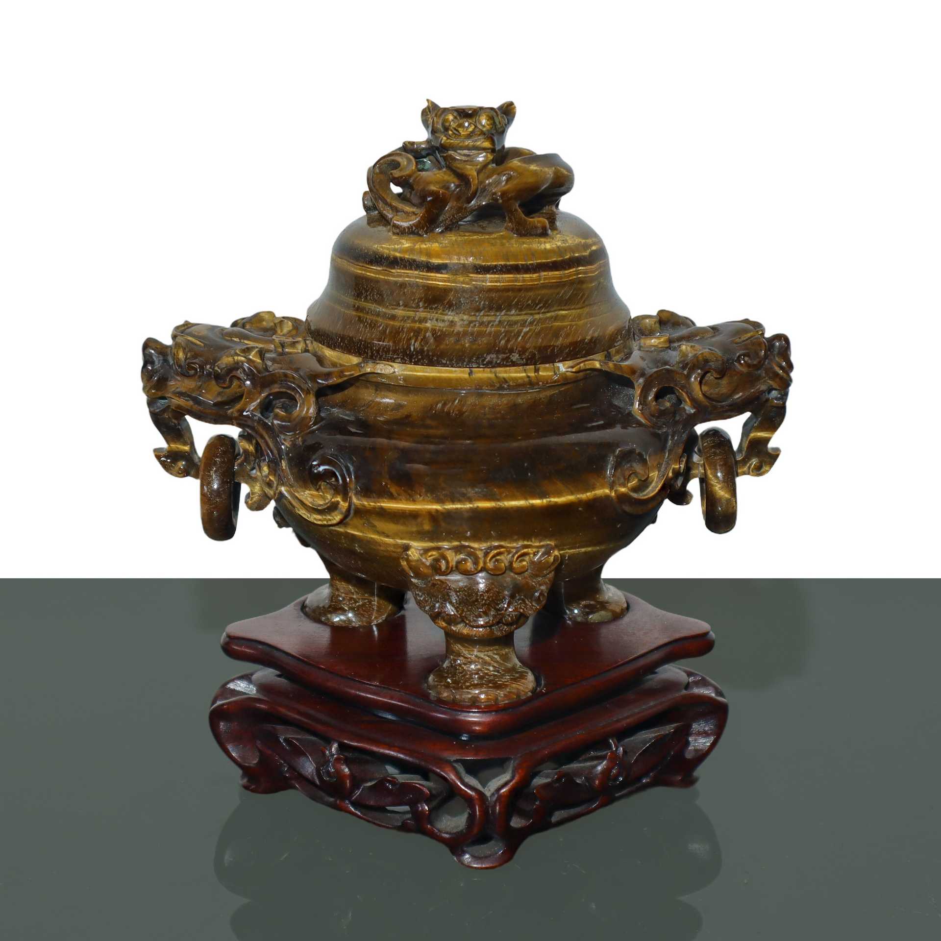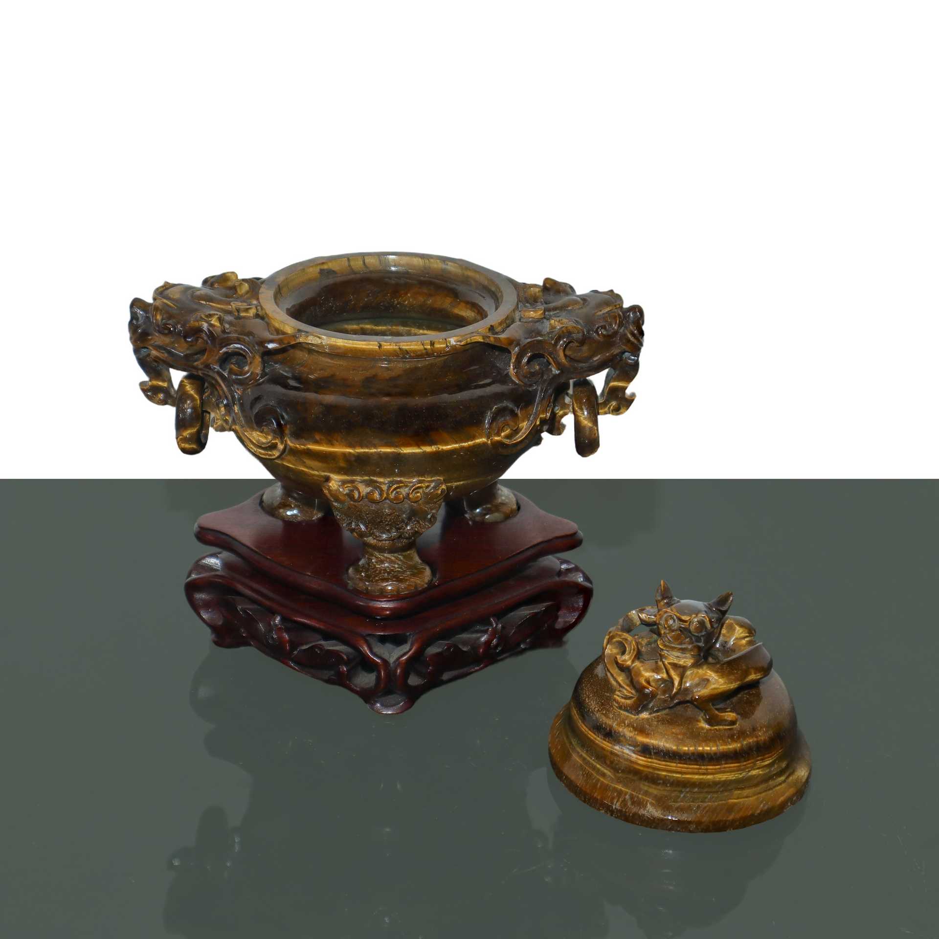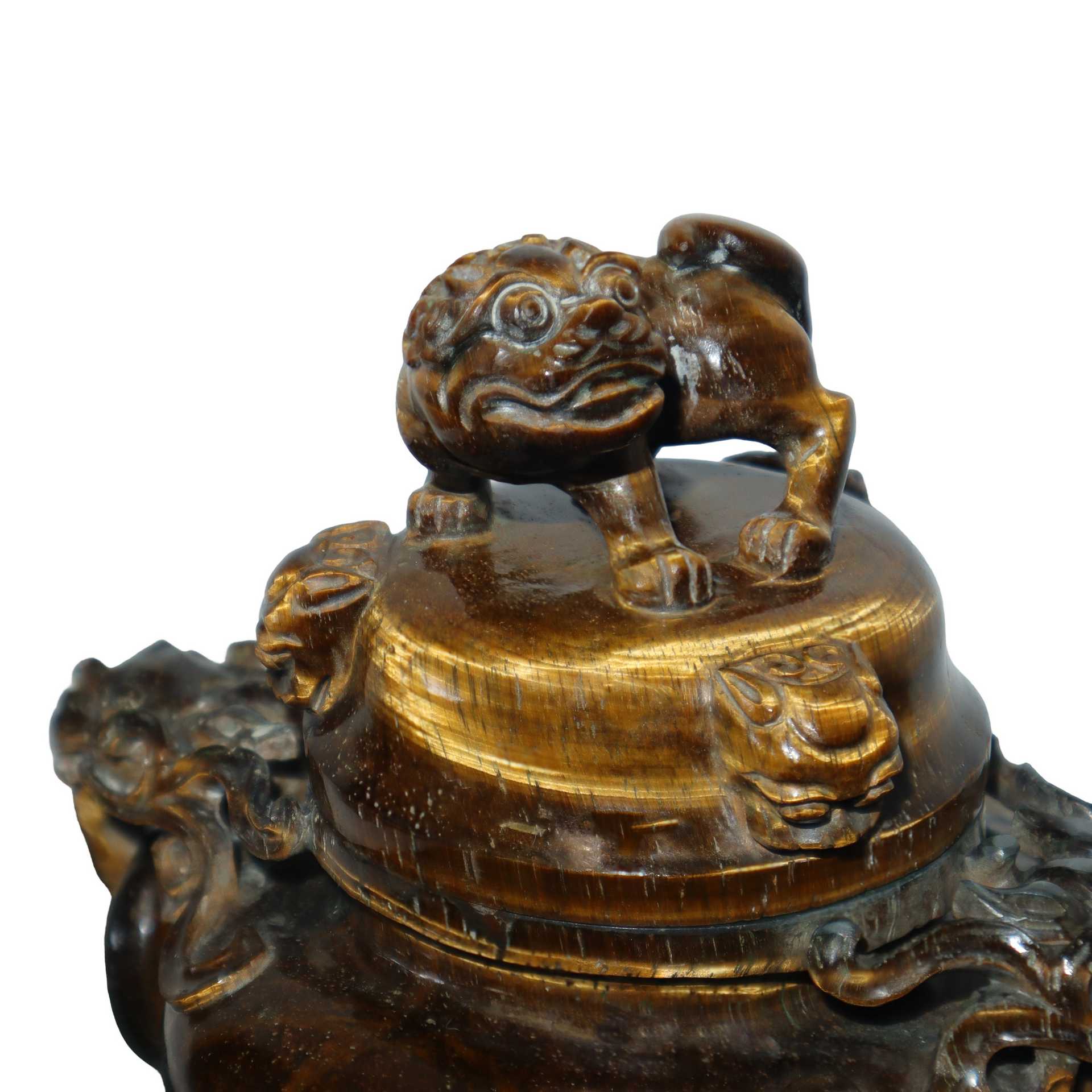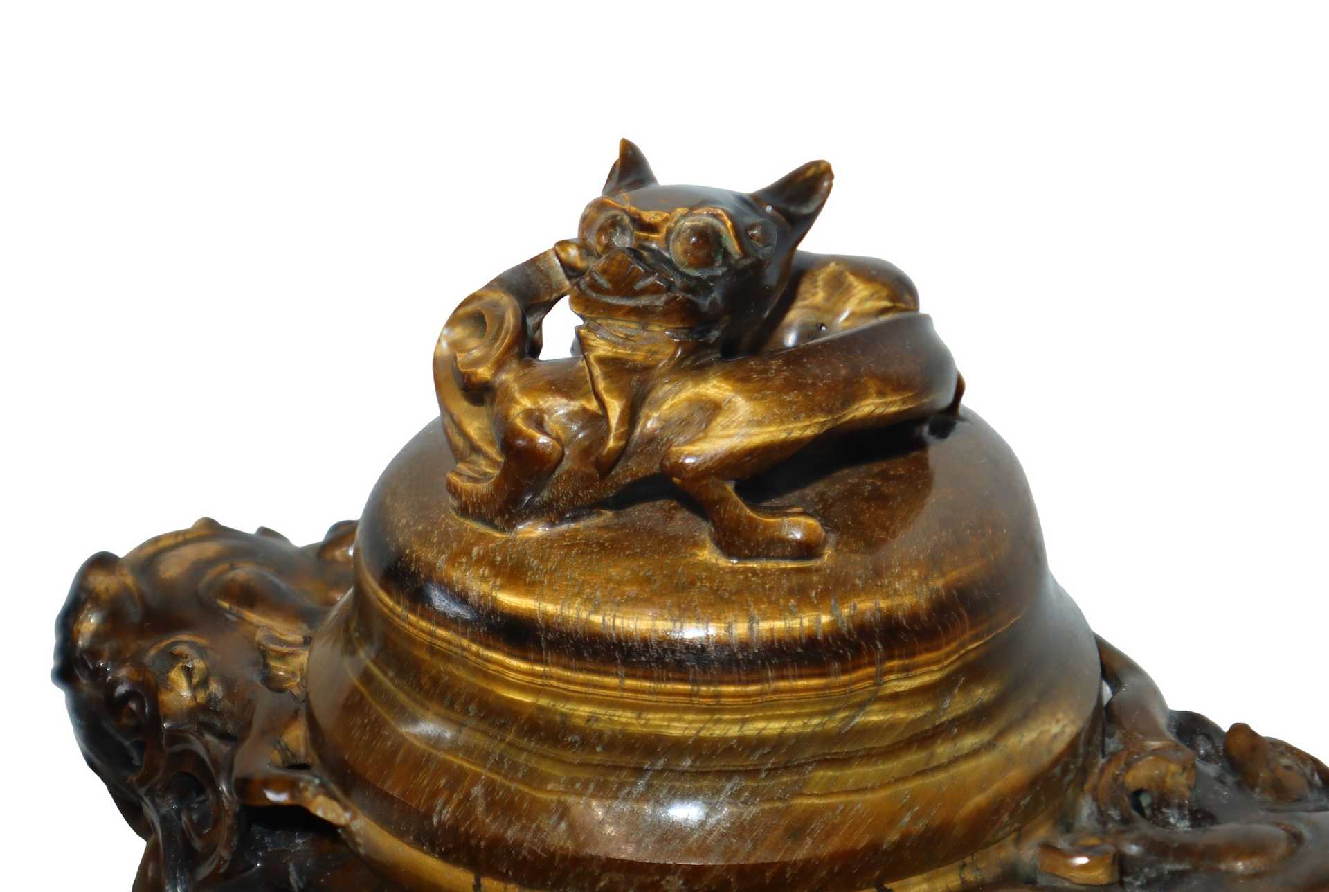 Coppia di poutiche cinesi in occhio di tigre h cm 16X15