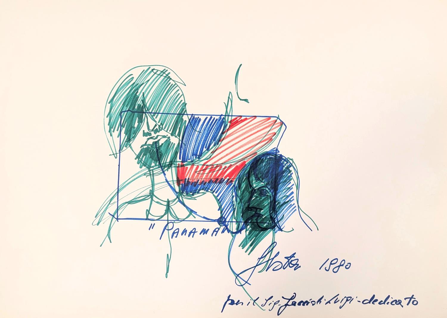 Tano Festa (Roma, 1938 - Roma, 1988) Panama pennarello su carta cm 50x70