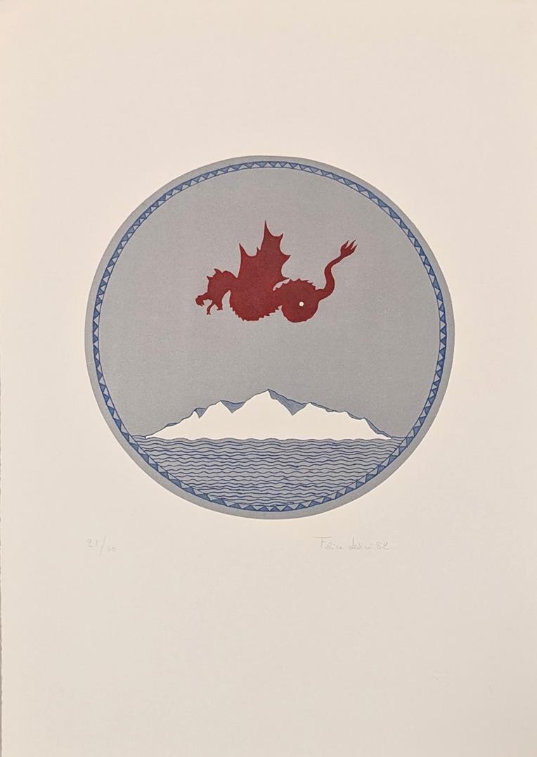 Felice Levini (Roma, 1956 - ) Il dragone 1982 litografia cm 49x34,5