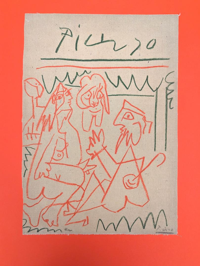 Pablo Picasso (Malaga, 1881 - Mougins, 1973) Le Dèjeuners serigrafia su tela cm 37x26,5; con cornice cm 58x47