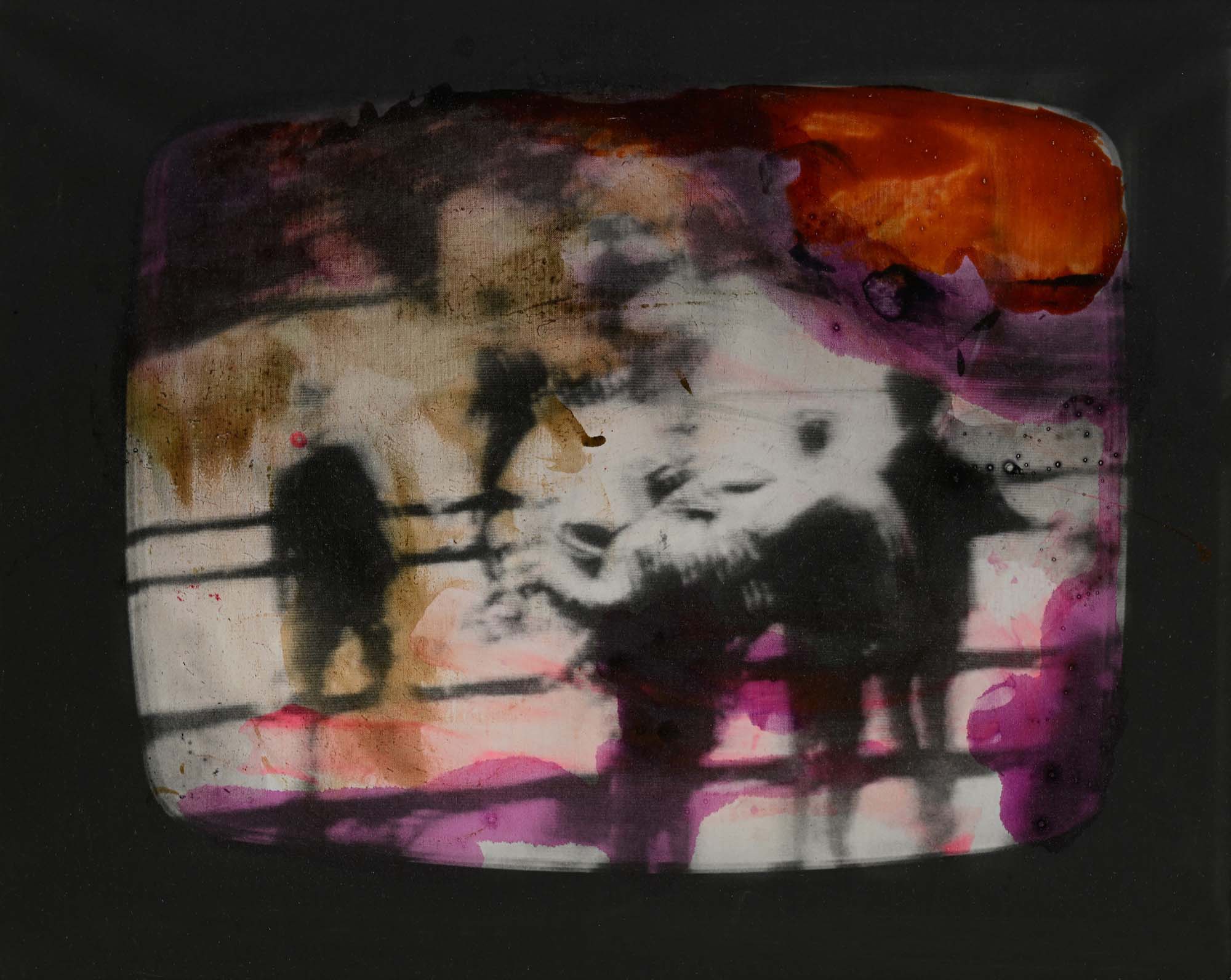 Mario Schifano Senza titolo Smalti su tela emulsionata cm 43x53 - in cornice cm 70x75 Al verso reca firma "Schifano" Certificato di autenticità rilasciato dall'Archivio Mario Schifano di Roma
